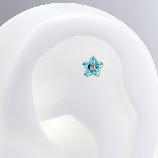 How about a flower to sparkle up your ear! If you want something a little larger than a single stone, but want to keep the profile of your earring low, this piece is perfect. Since it combines 5 small gemstones you get that extra shine without the bulk of a single large stone!