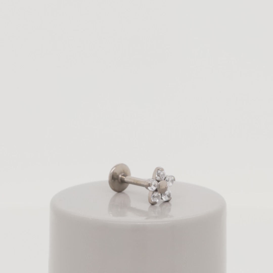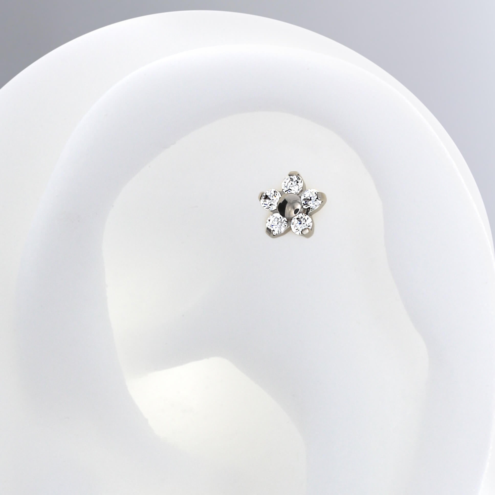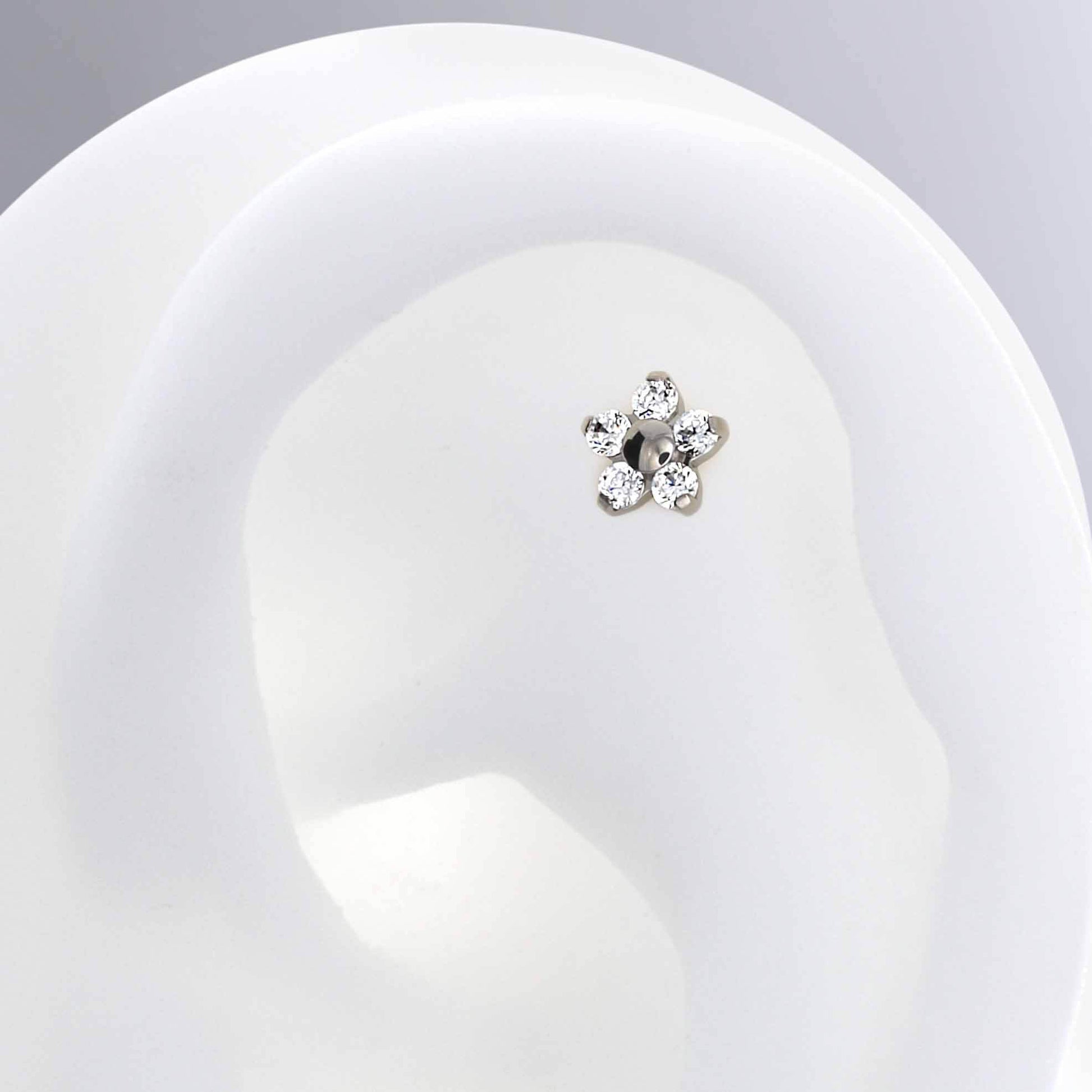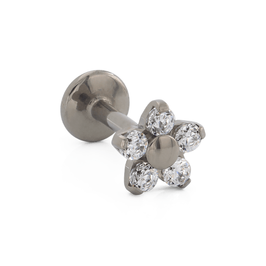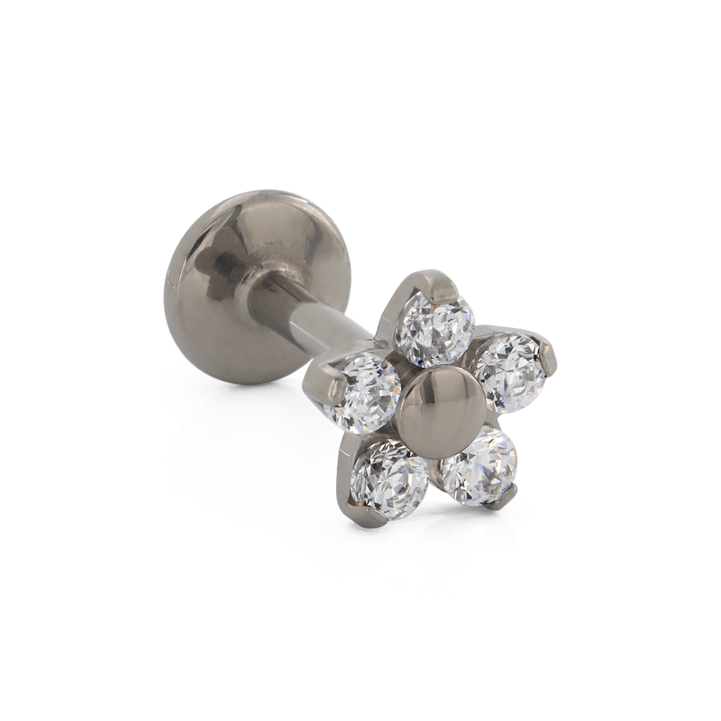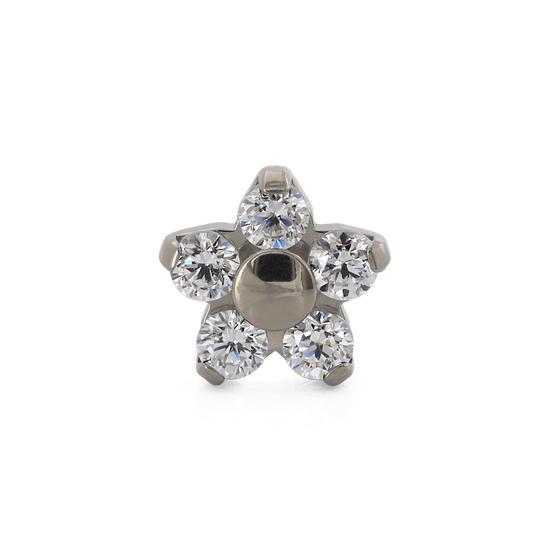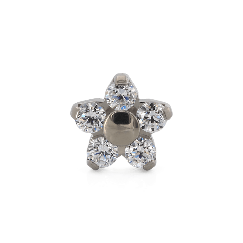 Size: 4.7mm Material: Titanium Gemstones: 5 x 1.5mm Cubic Zirconia |