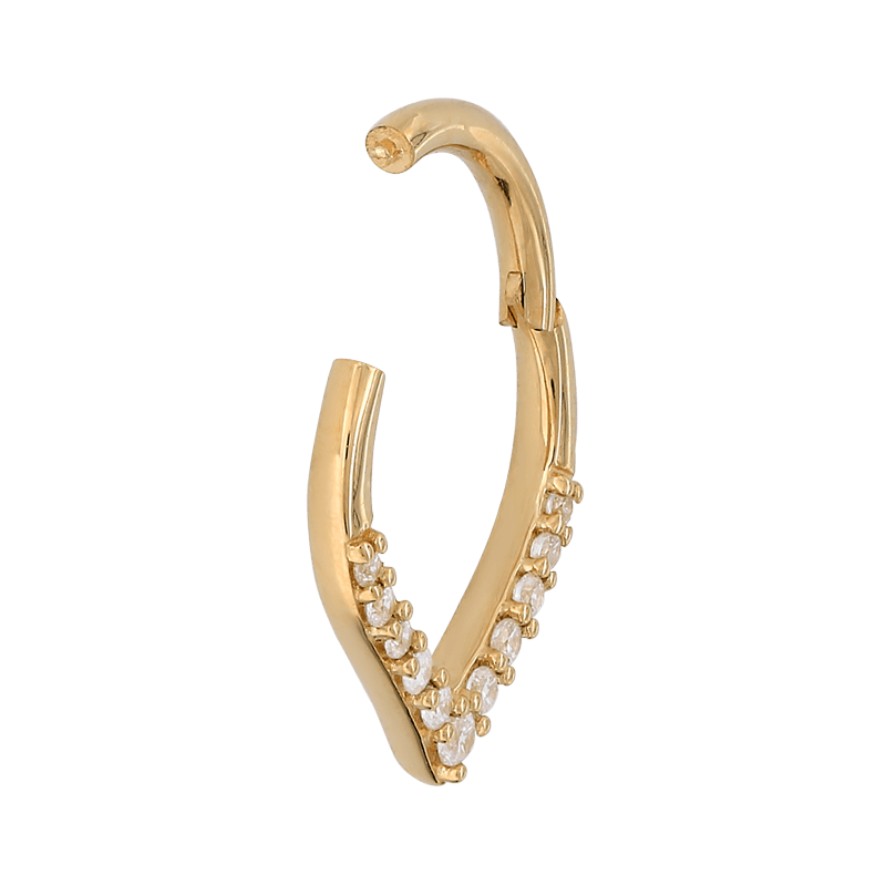 Size: 16g Material: 14k Gold Gemstone cut: Faceted White CZs |