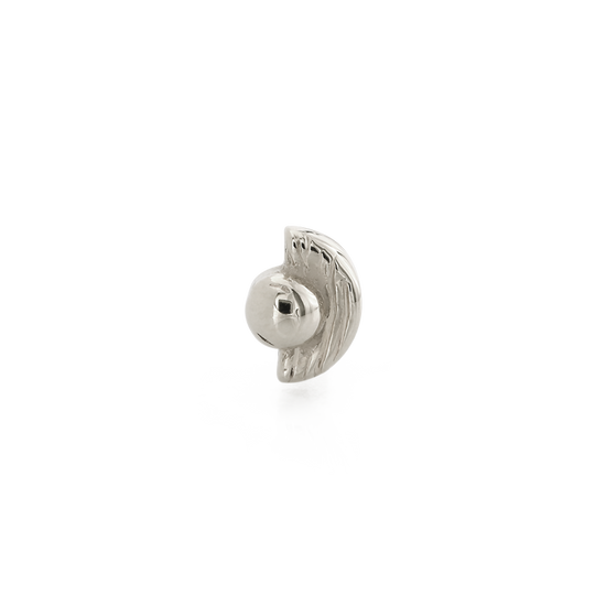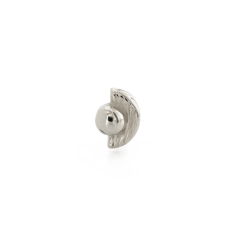 The front has a tiny half circle with a small dot on top. Textured to give it that Pupil personality! A spiced up version of the Half Full earring.