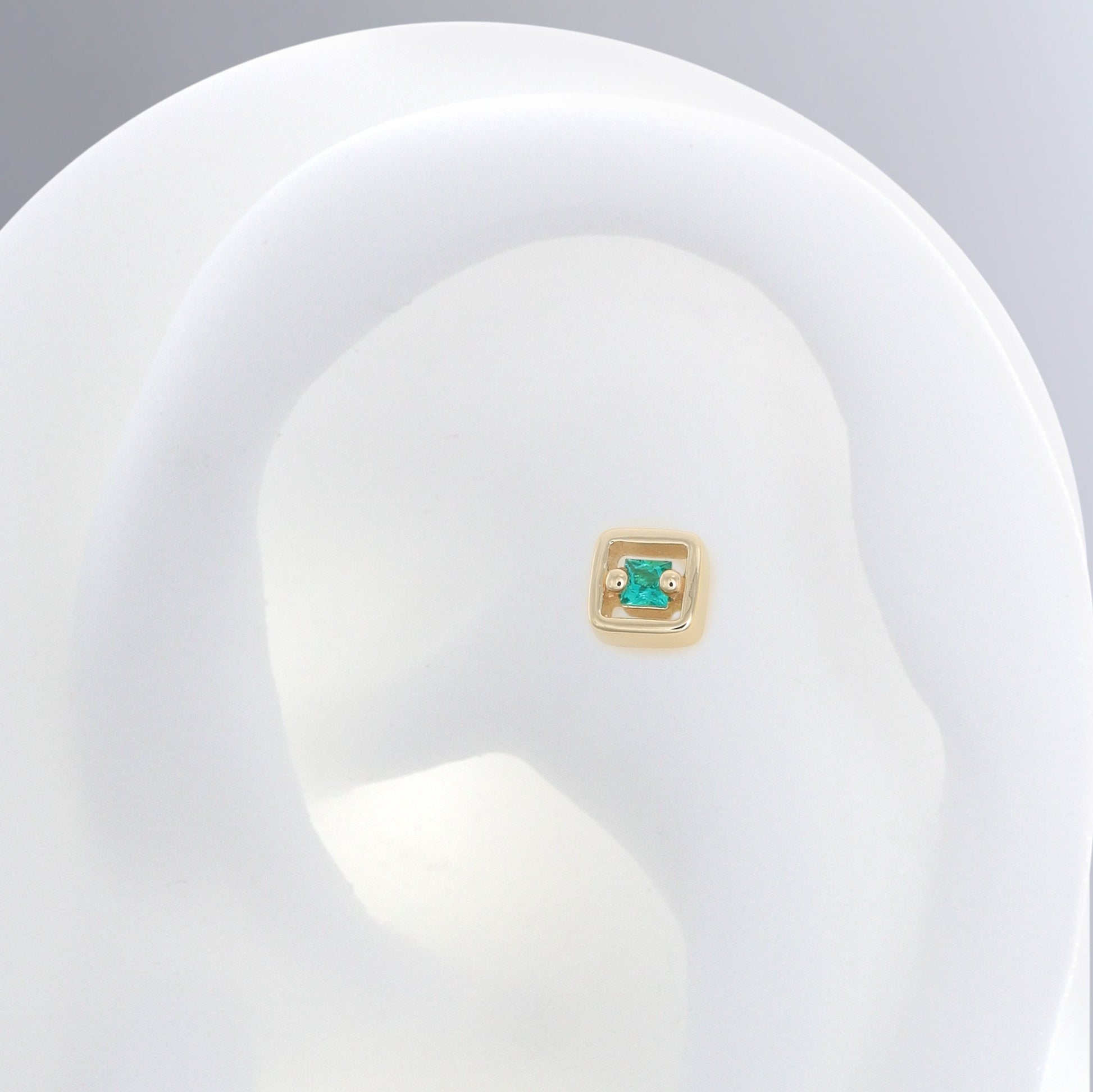 Size: 3.6mm x 3.6mm Material: 14k Gold Gemstone cut: 1.5mm Princess Cut Emerald |