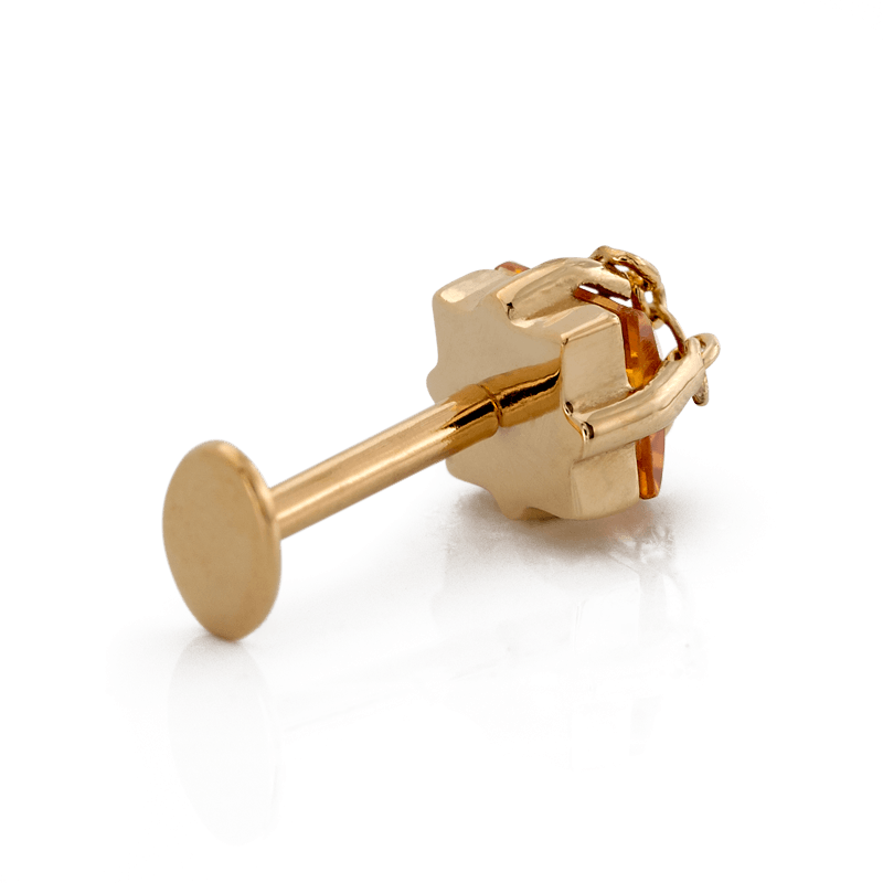 Fits any threadless post. If you buy it with a post in the options, the post is an 18g 1/4". That's the most common size for a healed ear piercing. |