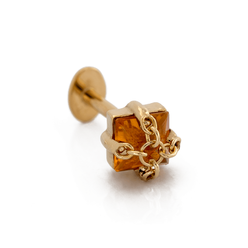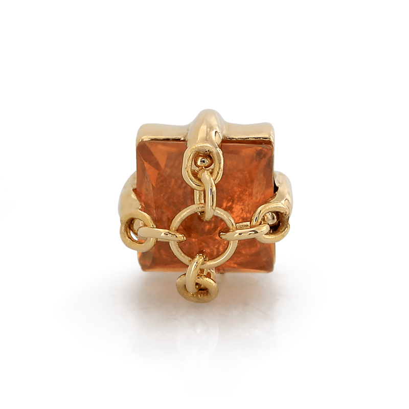 How Dare You not buy this earring right now! This is a signature Pupil Hall piece with chain wrapping over a Princess cut stone.