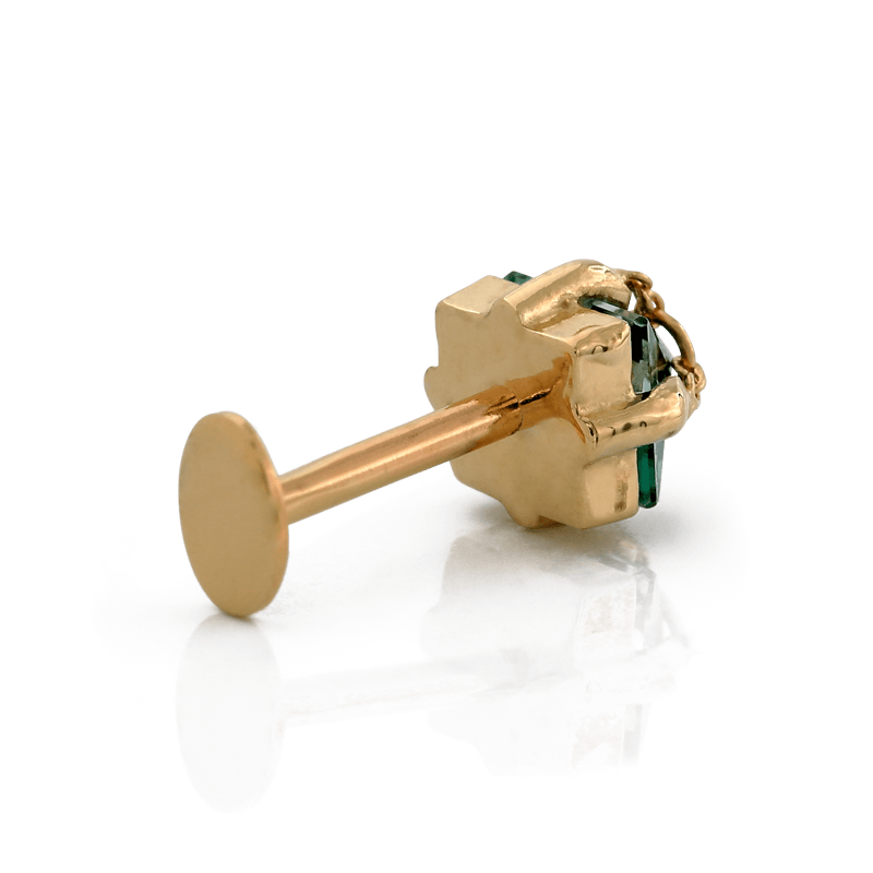 Fits any threadless post. If you buy it with a post in the options, the post is an 18g 1/4". That's the most common size for a healed ear piercing. |
