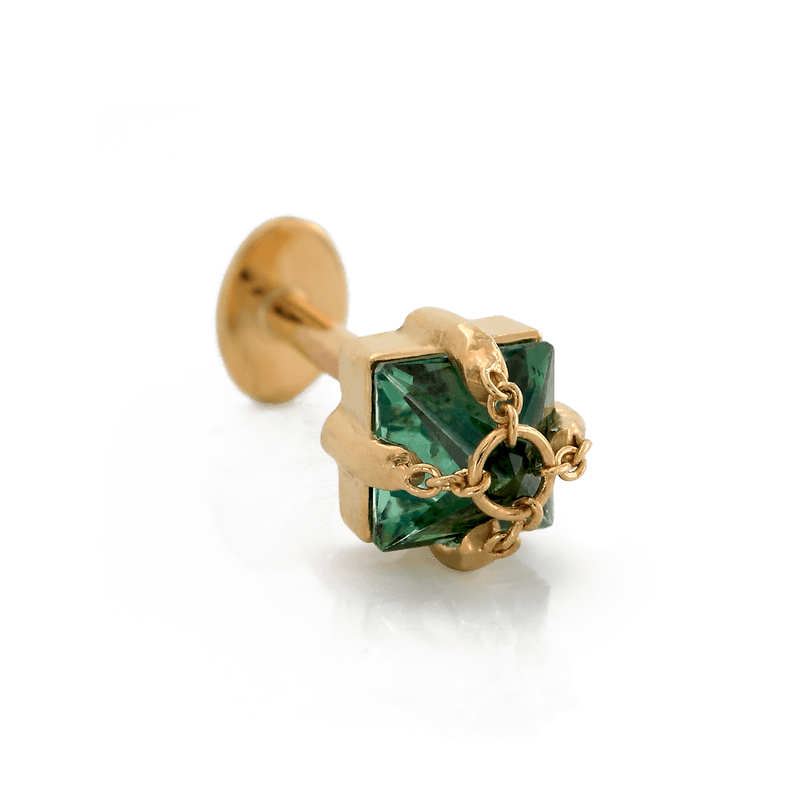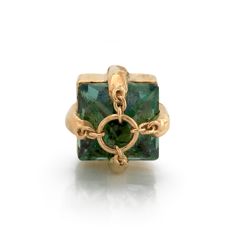 How Dare You not buy this earring right now! This is a signature Pupil Hall piece with chain wrapping over a Princess cut stone.