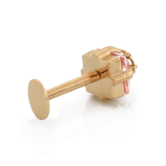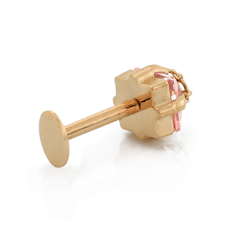 Fits any threadless post. If you buy it with a post in the options, the post is an 18g 1/4". That's the most common size for a healed ear piercing. |