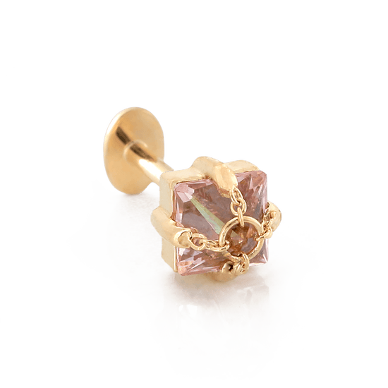 How Dare You not buy this earring right now! This is a signature Pupil Hall piece with chain wrapping over a Princess cut stone.
