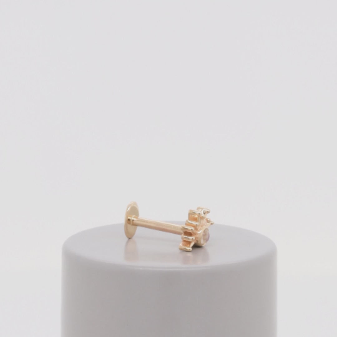 Size: 4.8mm x 6.7mm Material: solid 14k gold Gemstone: Faceted Round 1.5mm |
