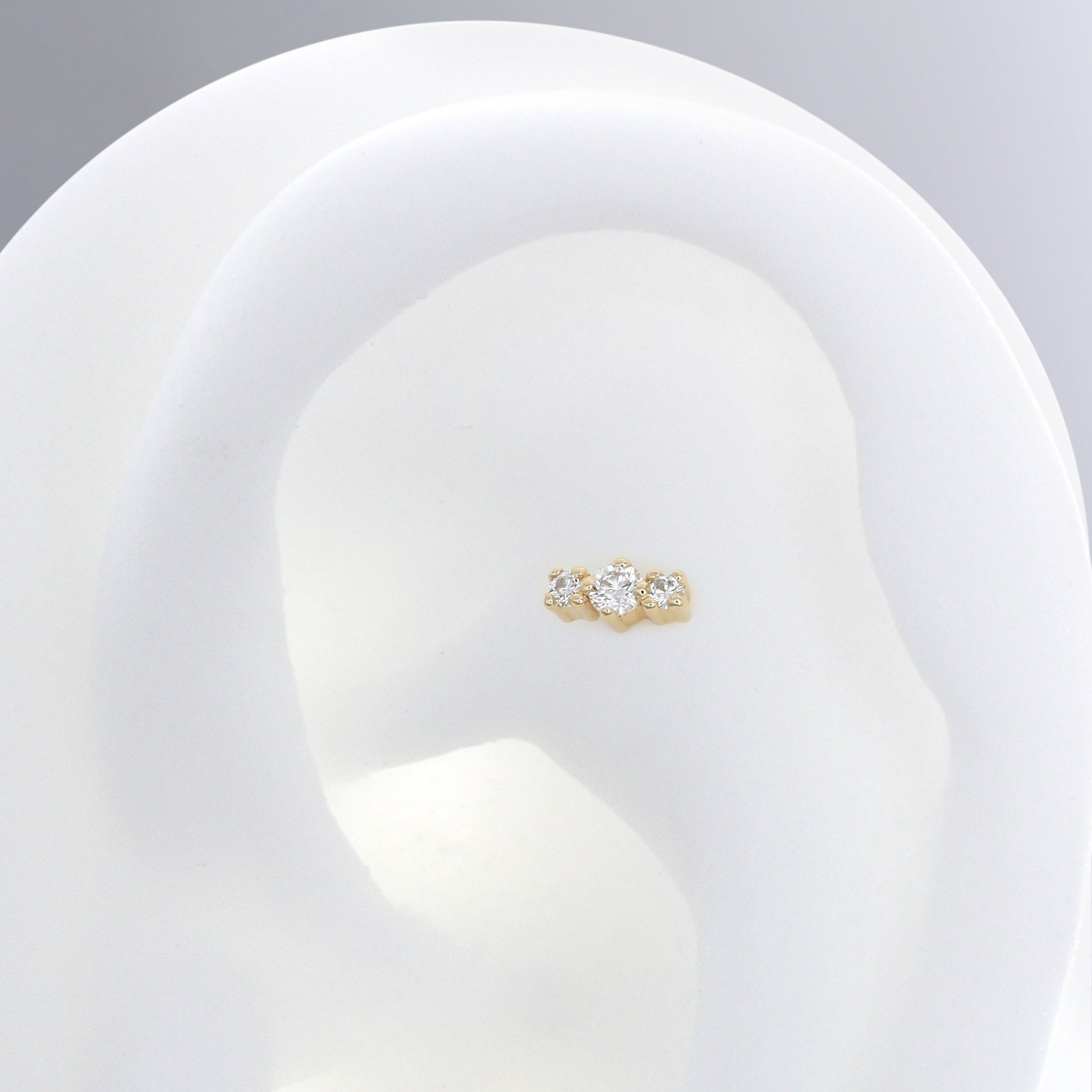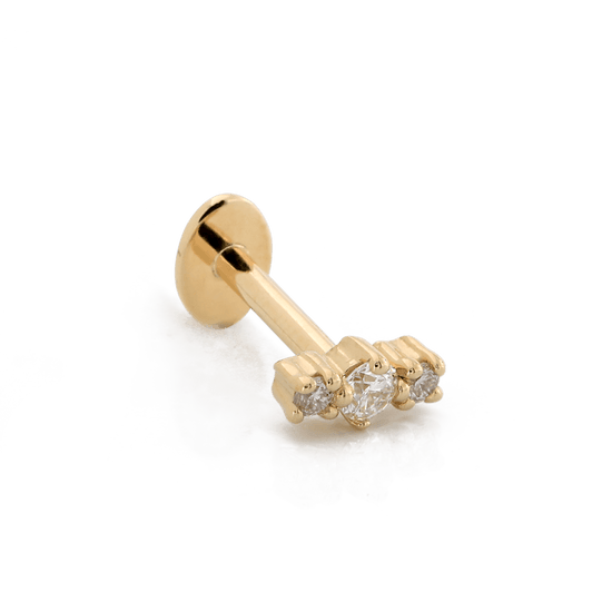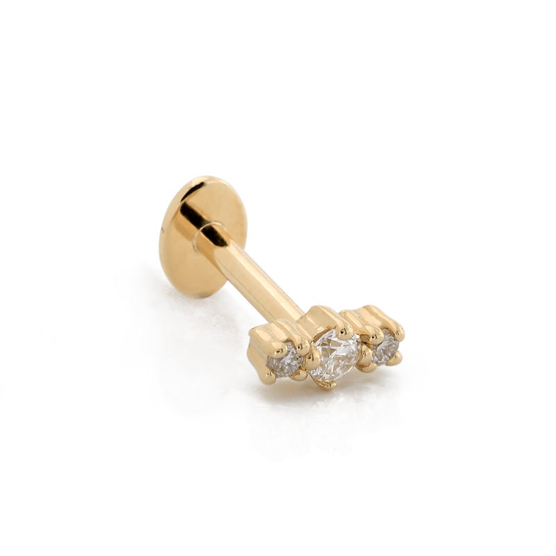 Size: 2mm x 4.7mm Material: 14k Gold Gemstone cut: Faceted Rounds - White Diamonds |