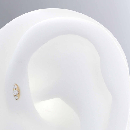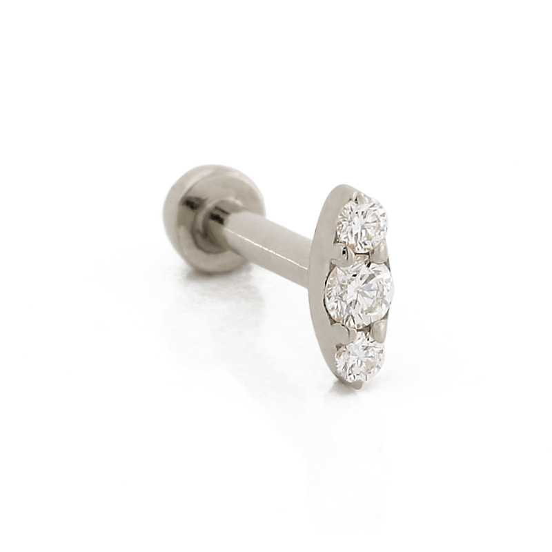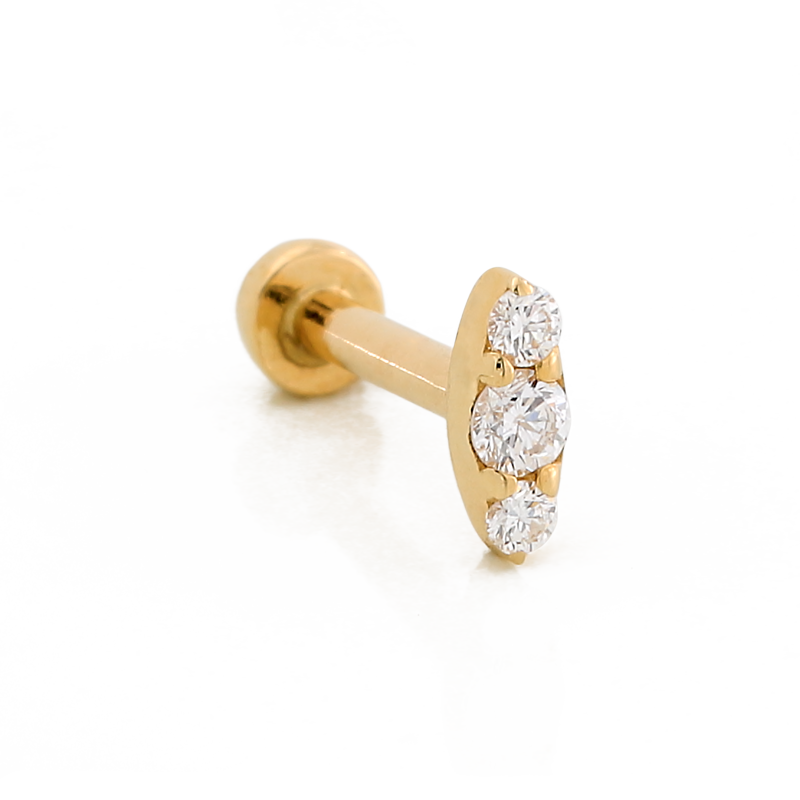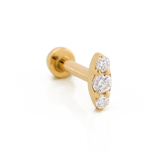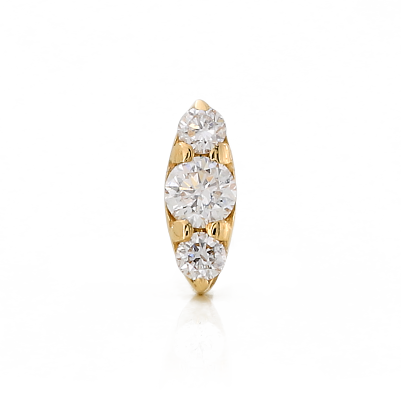 14k Solid gold Marquise Shape is three round Diamonds in a gold marquise shape