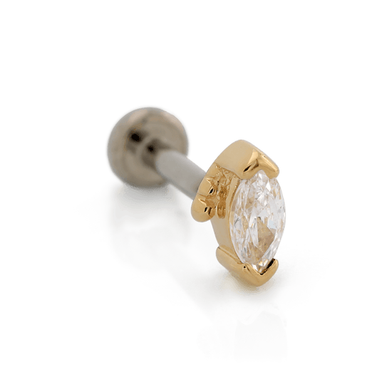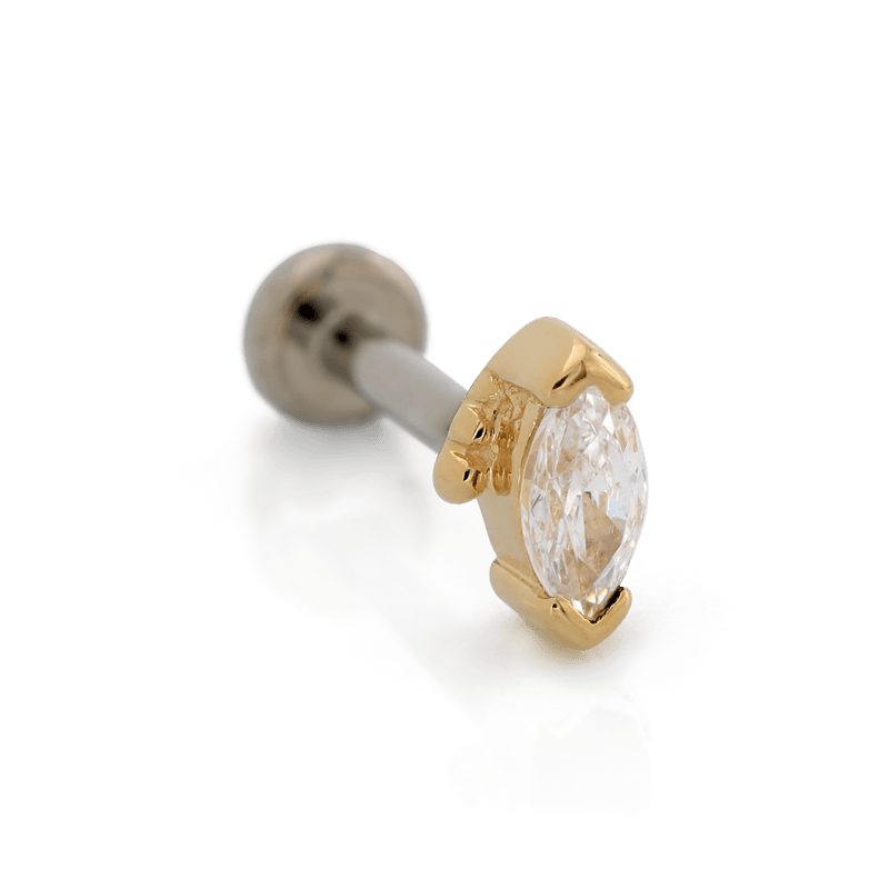 Size: 18g/16g 3.6mm x 4.7mm Material: solid 14k gold Gemstone: Faceted Marquise |