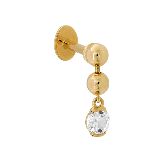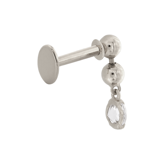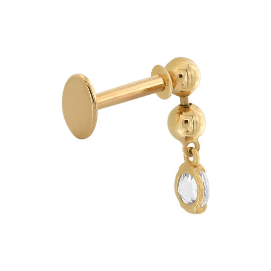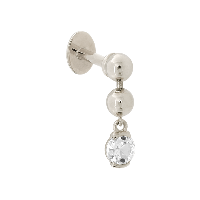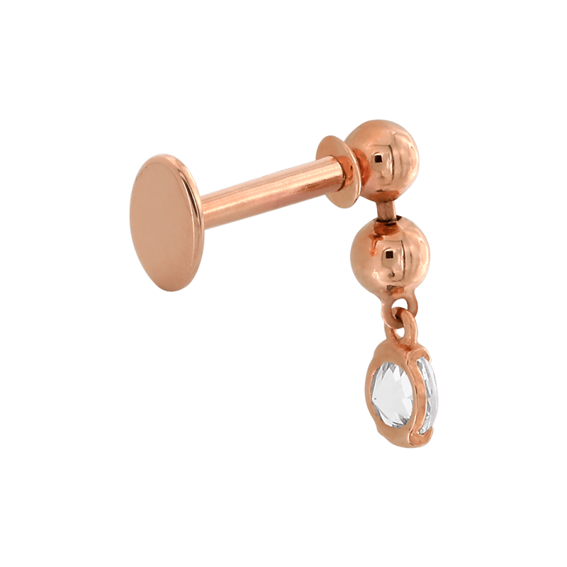 Fits any threadless post. If you buy it with a post in the options, the post is an 18g 1/4". That's the most common size for a healed ear piercing. |