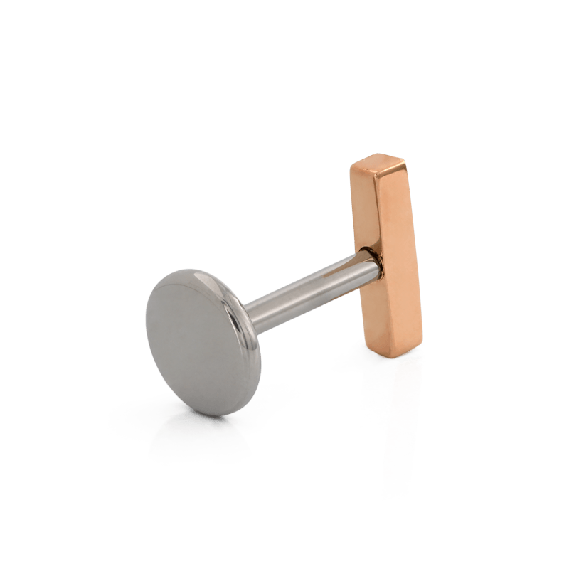 Fits most 18g or 16g threaded posts. The "with post" option comes with an 18g 1/4" Titanium Threaded Post with a small (3mm) fixed flat back. |