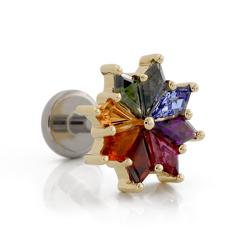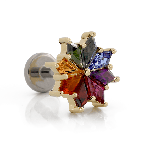 Size: 18g/16g 8.7mm x 9.5mm Material: 14k Solid Gold Gemstone cut: Faceted Kite |