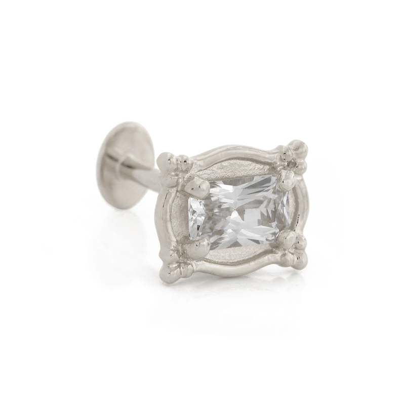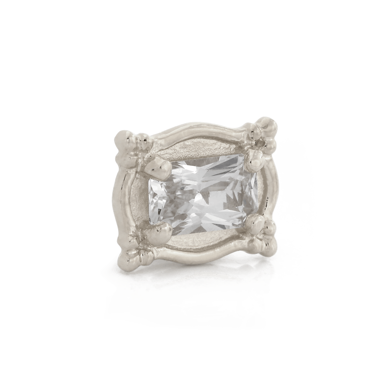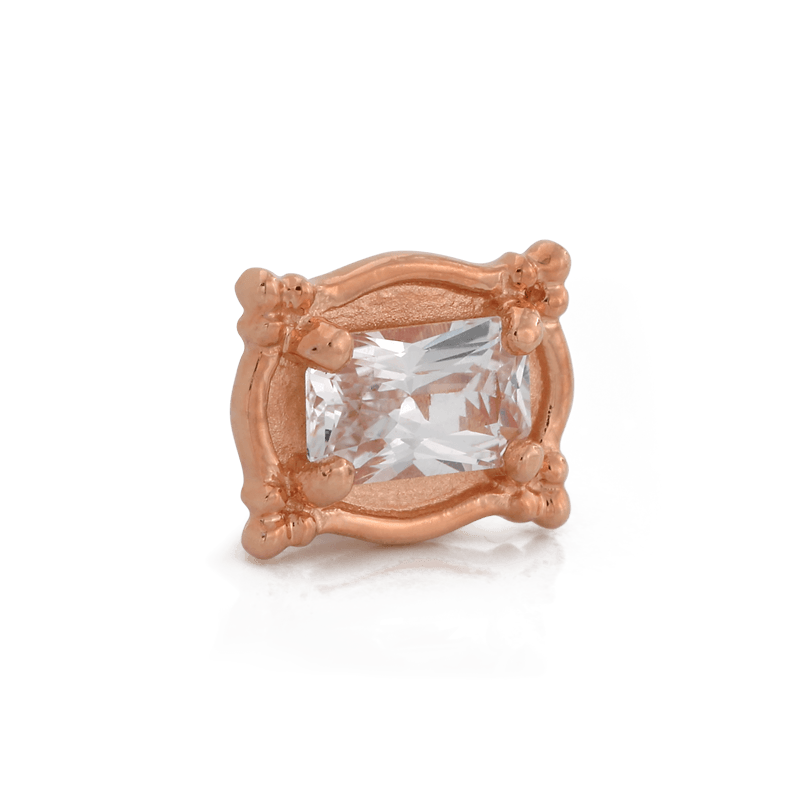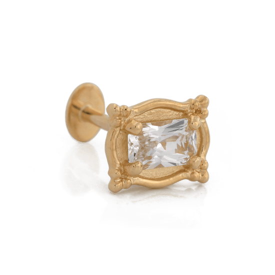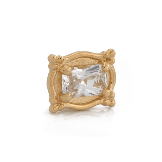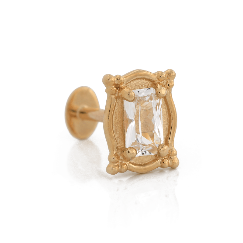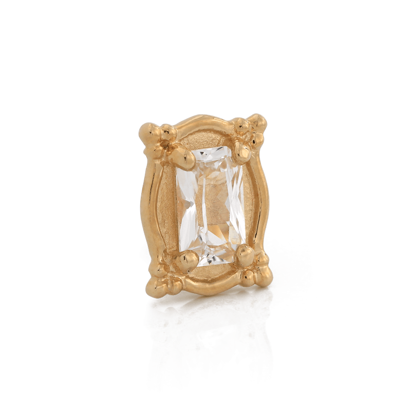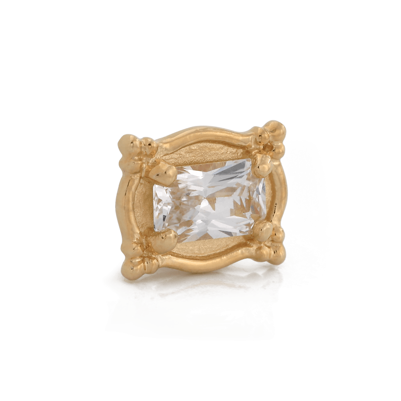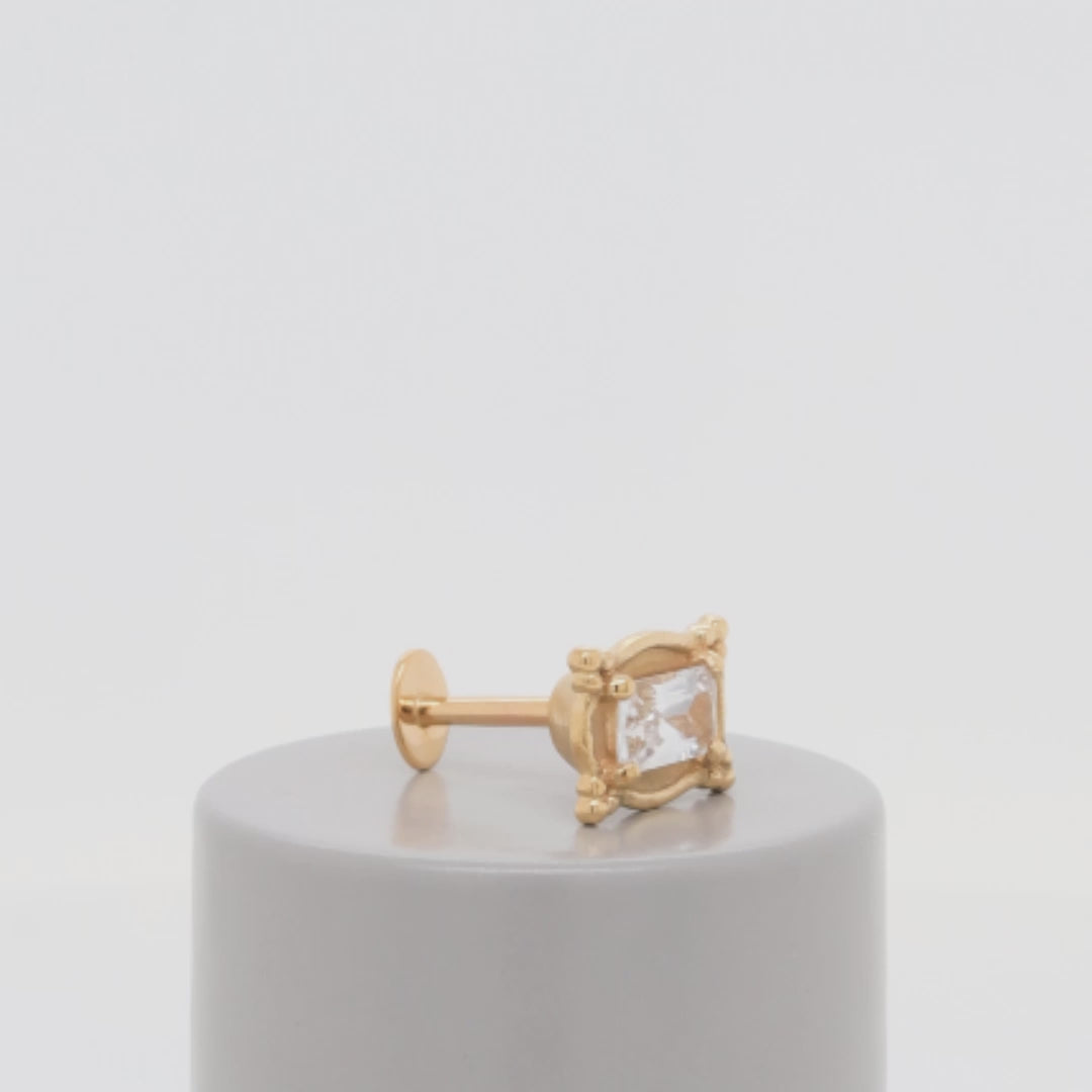 Size: 5.8mm x 7.7mm Material: solid 18k gold Gemstone: Faceted Baguette |