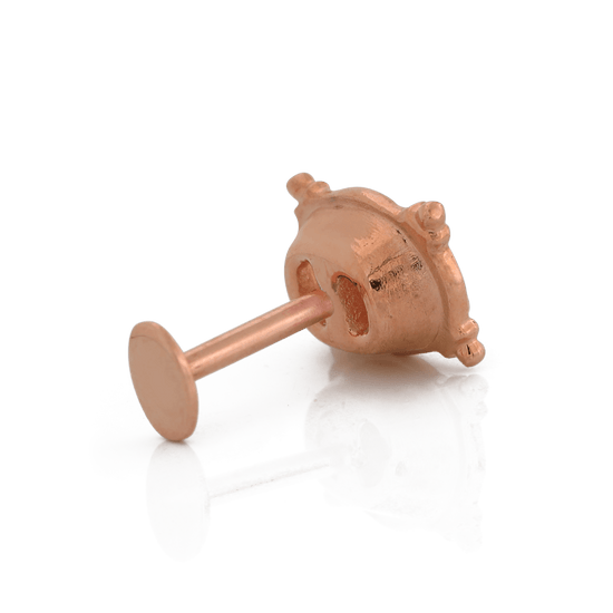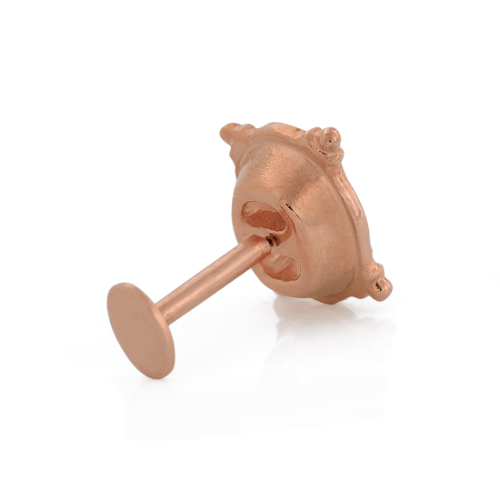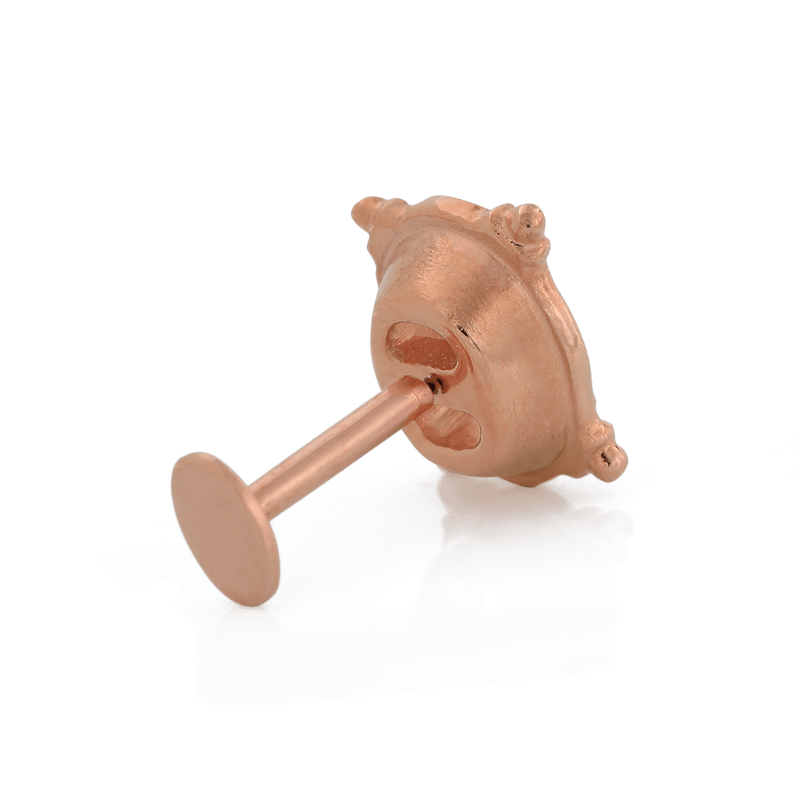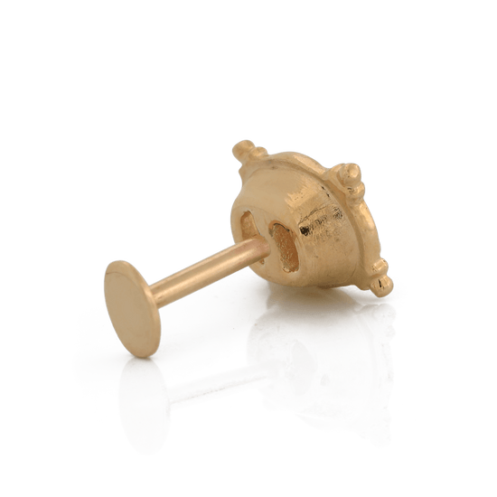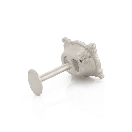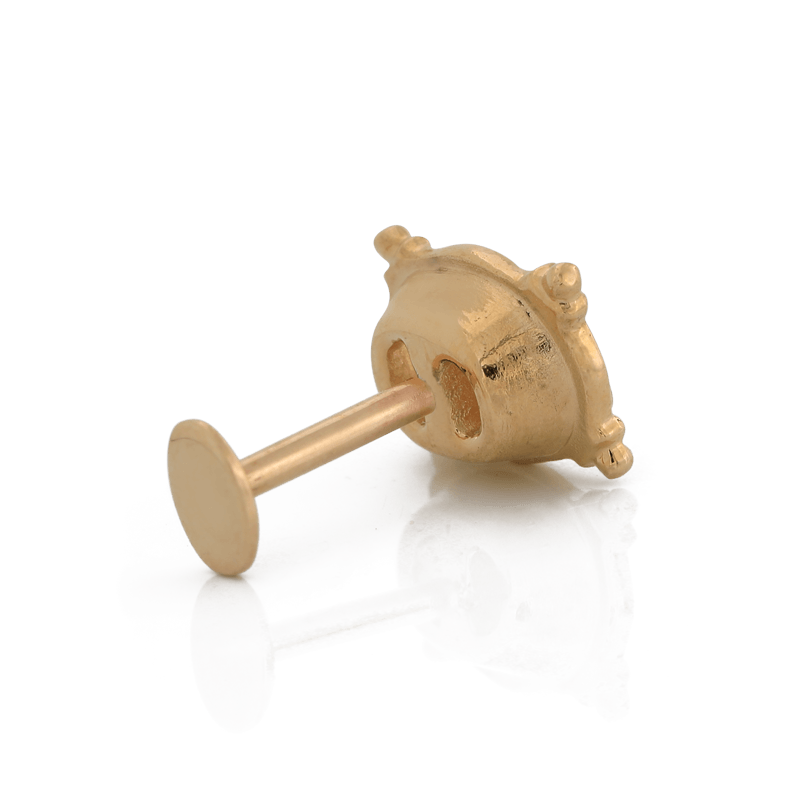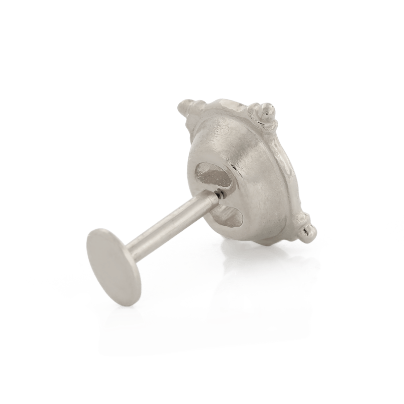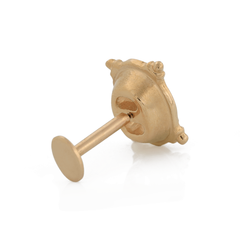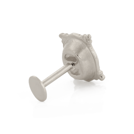 Fits any threadless post. If you buy it with a post in the options, the post is an 18g 1/4". That's the most common size for a healed ear piercing. |