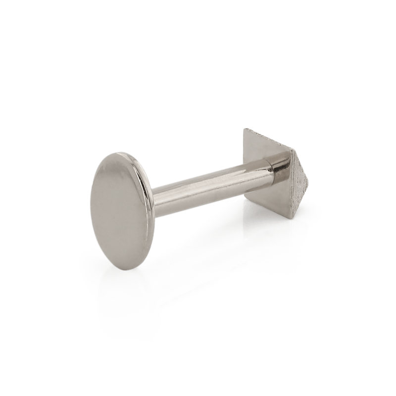 This end is a small square that features four disproportionate angles. One of the angles is high polished and the other three have texture added.