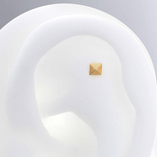 This end is part of the Pupil geometric collection! These have wonderful attention to detail. Check out the 360 view on the Prism Earring and you'll see how the light plays with the different textured and polished angles!