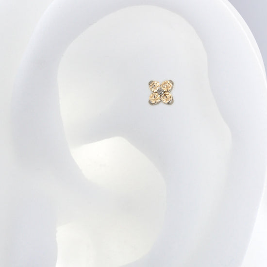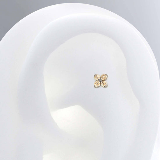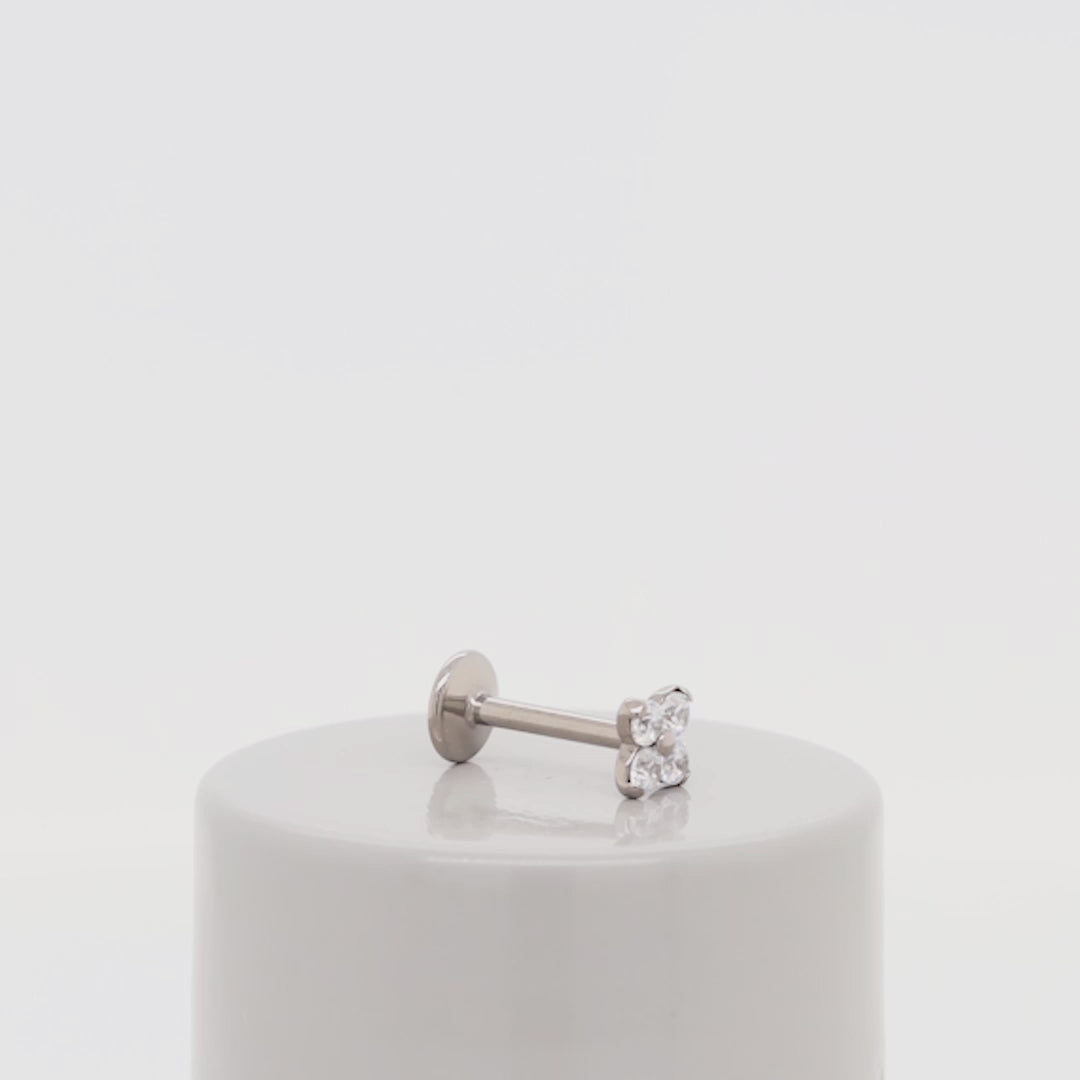 This piece has 4 little 1.5mm prong-set faceted gems creating a square shape.