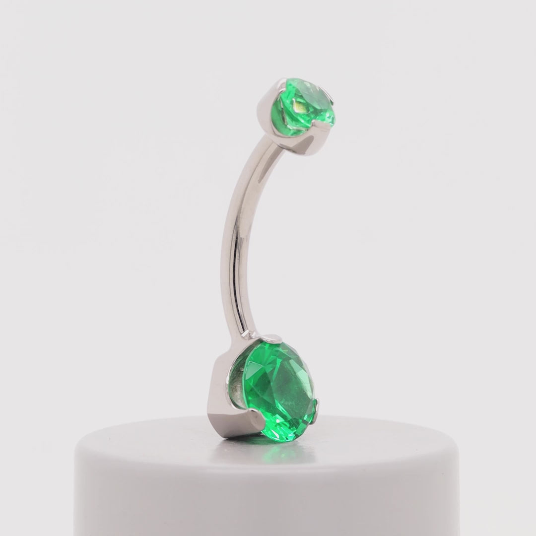 Prong-Set Faceted Navel Curve - Emerald CZ