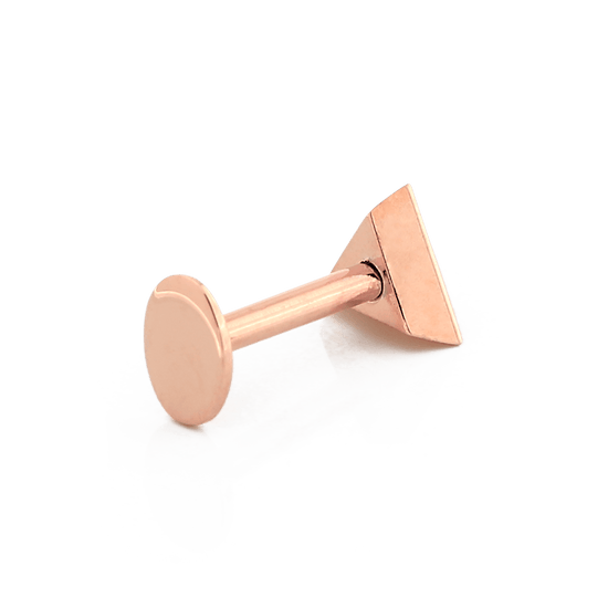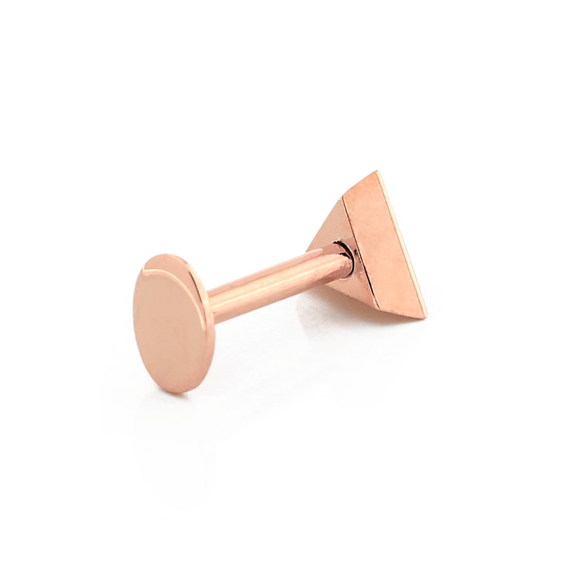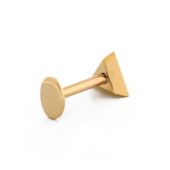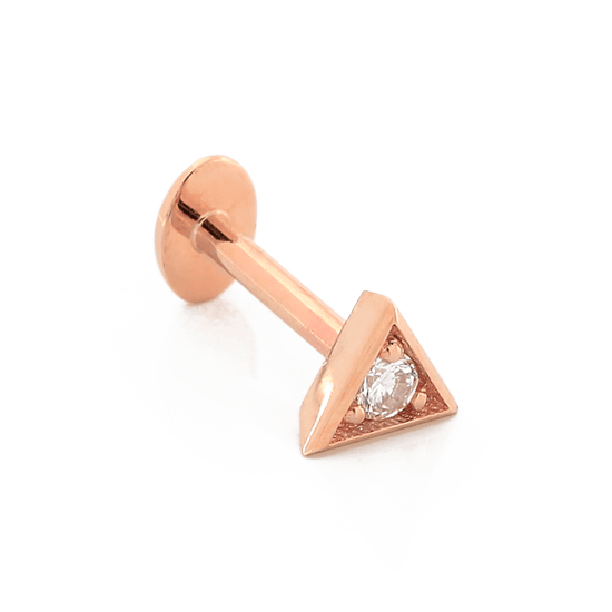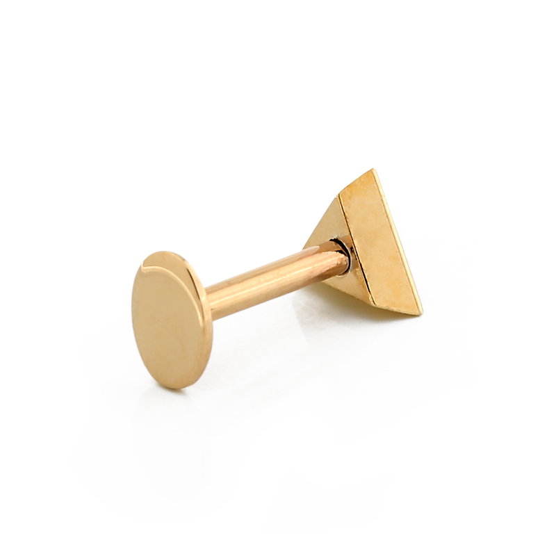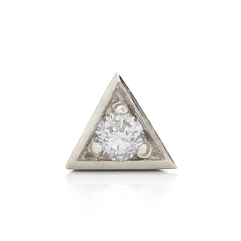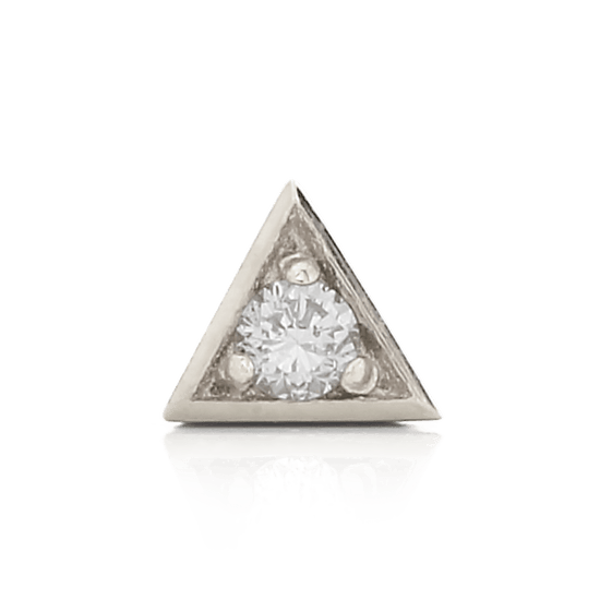 A beautiful prong set genuine diamond in a solid 14k gold triangular shape.