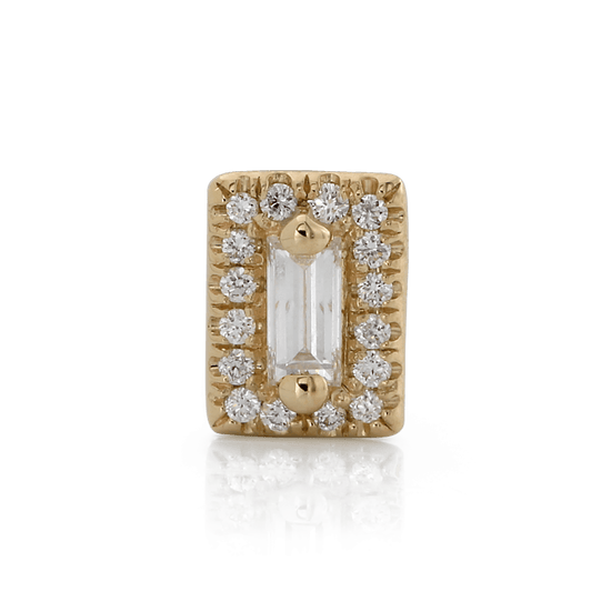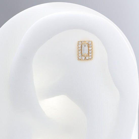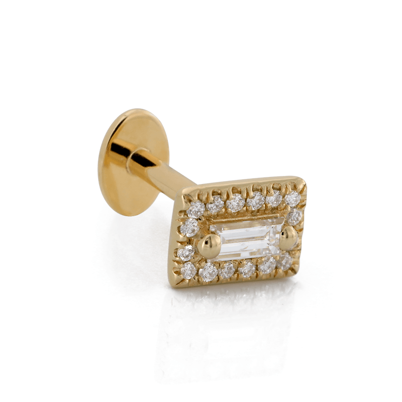 Size: 4mm x 5.4mm Material: 14k Gold Gemstone cut: Faceted Baguette & Faceted Rounds - White Diamonds |