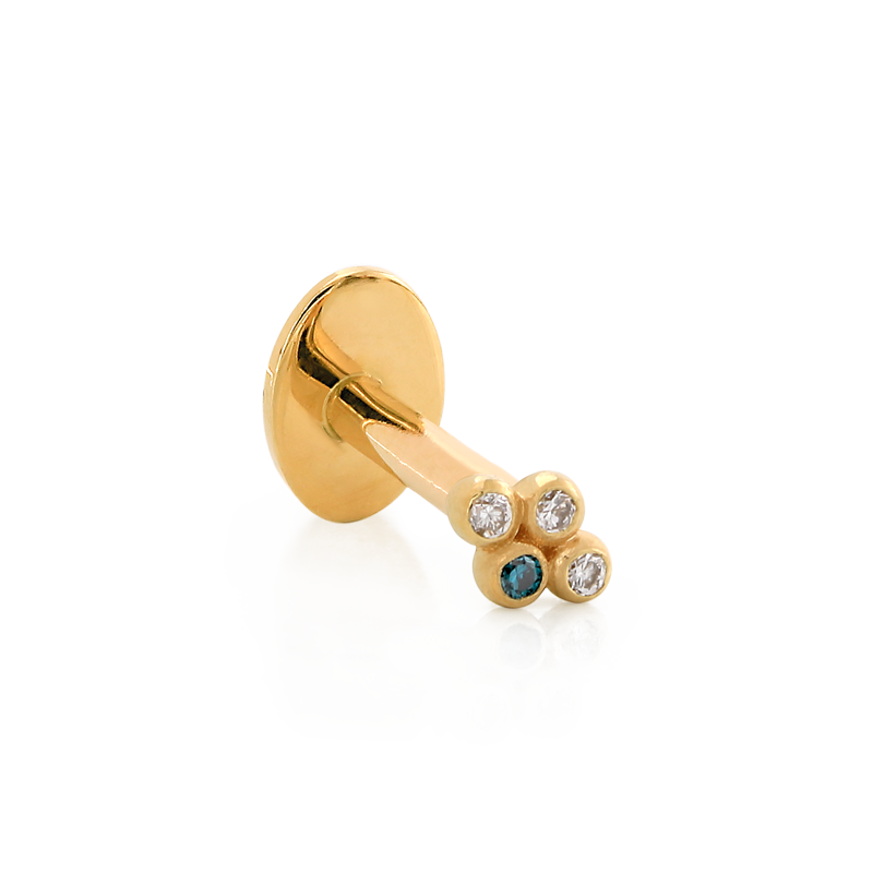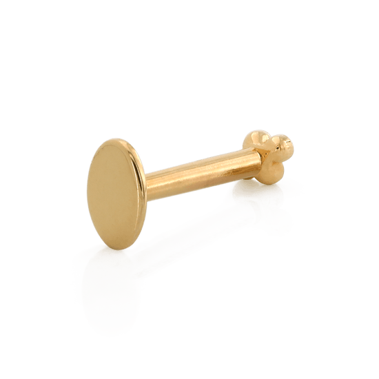 Fits most threadless posts. It comes with an 18g 1/4", if you buy With Gold Post. Need a different size? Find your perfect sized gold post here, or titanium post here. |