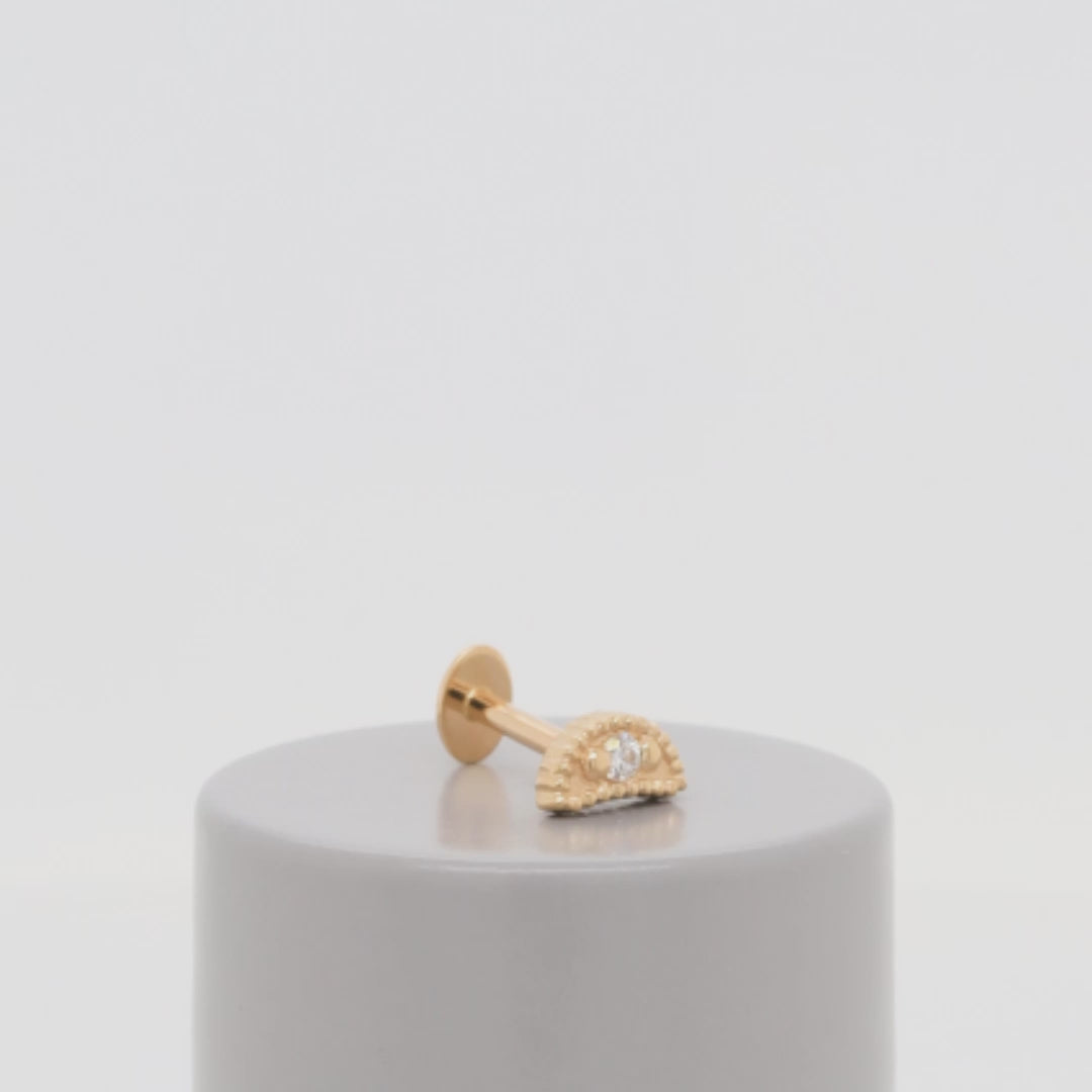 Size: 3.4mm x 5.8mm Material: solid 18k gold Gemstone: Faceted Round |