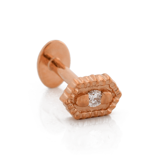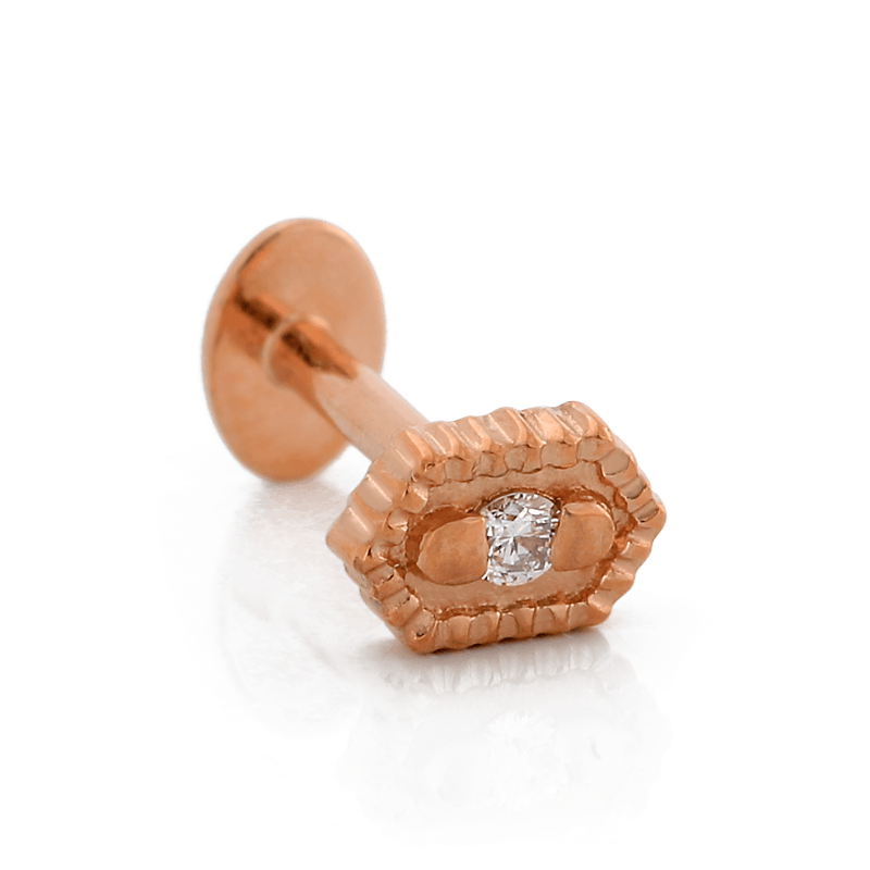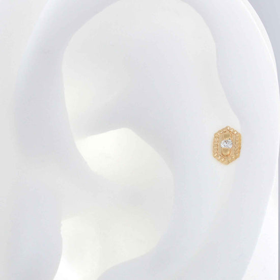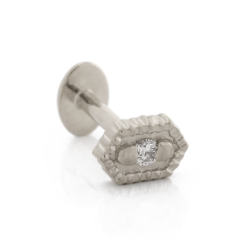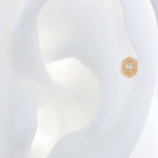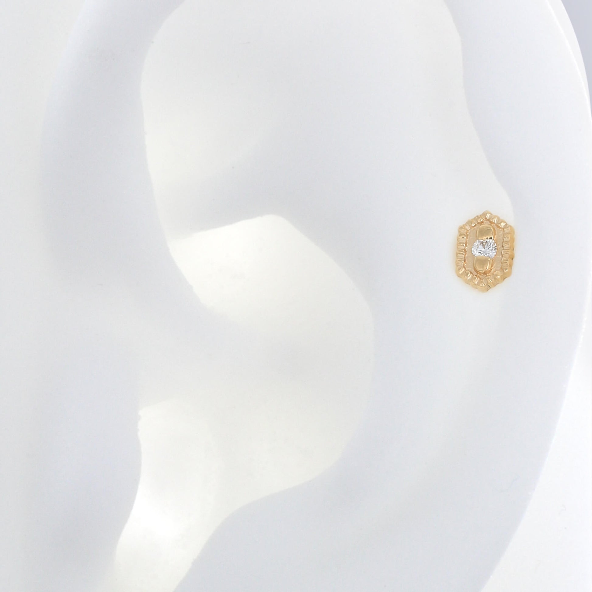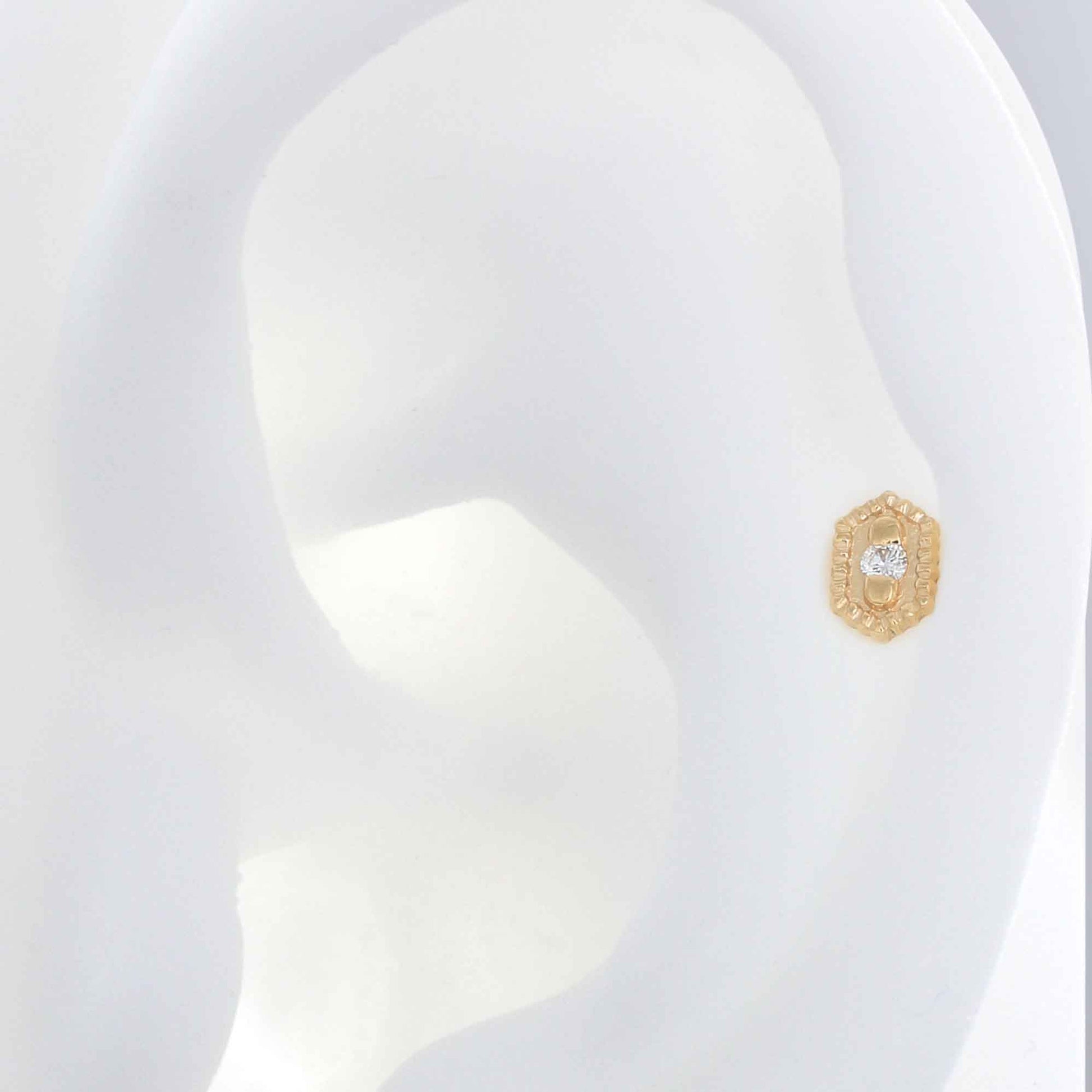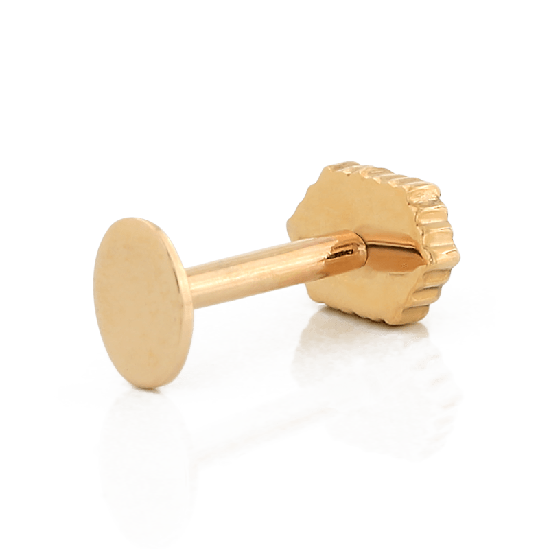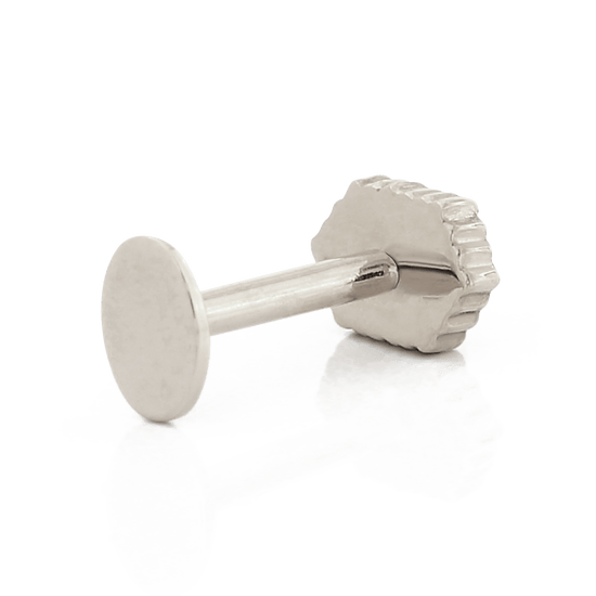 Fits any threadless post. If you buy it with a post in the options, the post is an 18g 1/4". That's the most common size for a healed ear piercing. |
