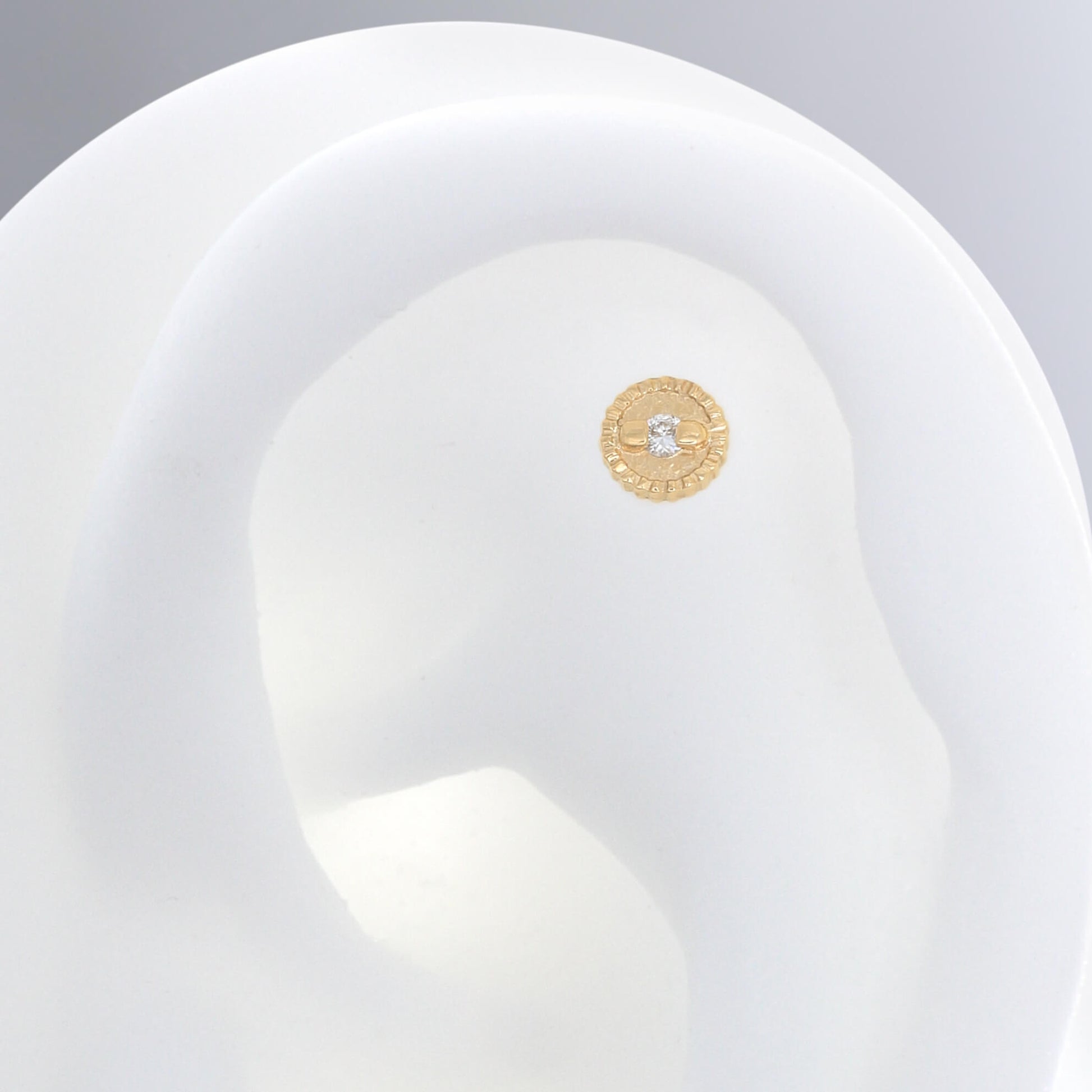 Fits any threadless post. If you buy it with a post in the options, the post is an 18g 1/4". That's the most common size for a healed ear piercing. |