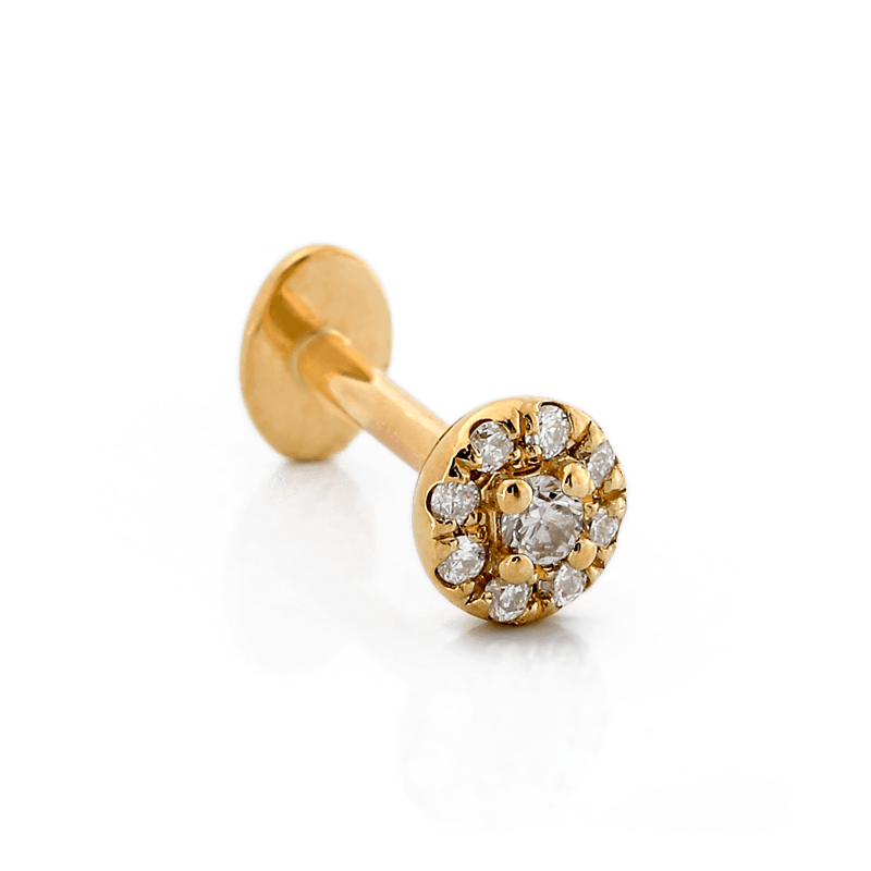 Size: 3.8mm Material: 14k Gold Gemstone cut: Faceted Rounds - White Diamonds |