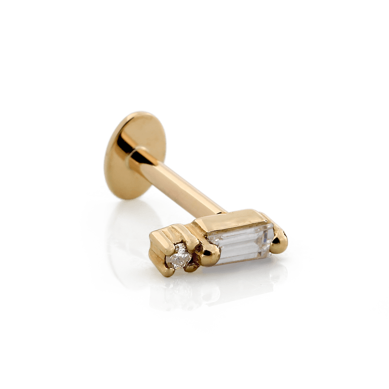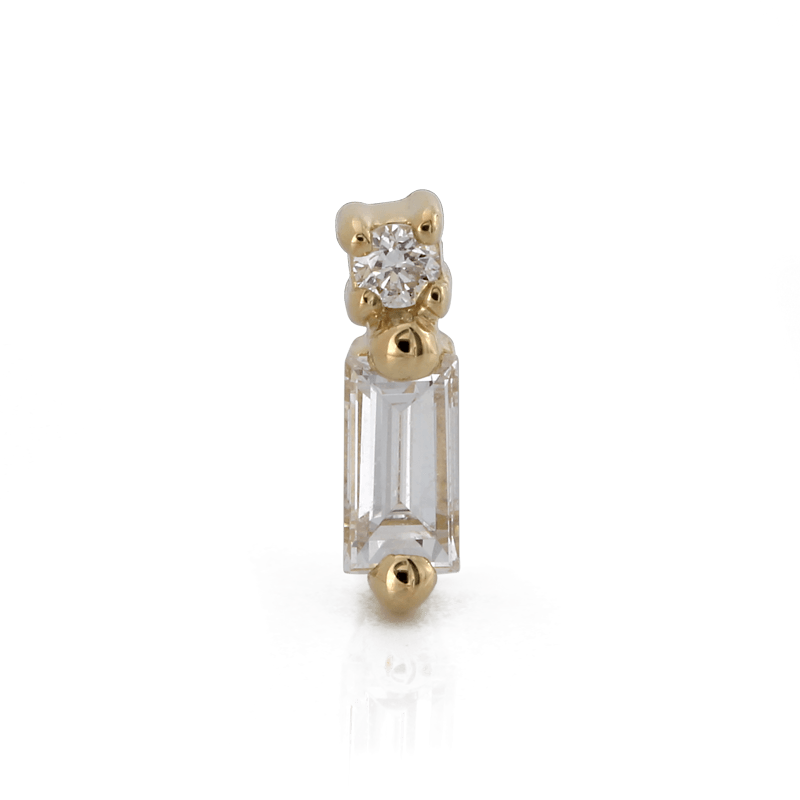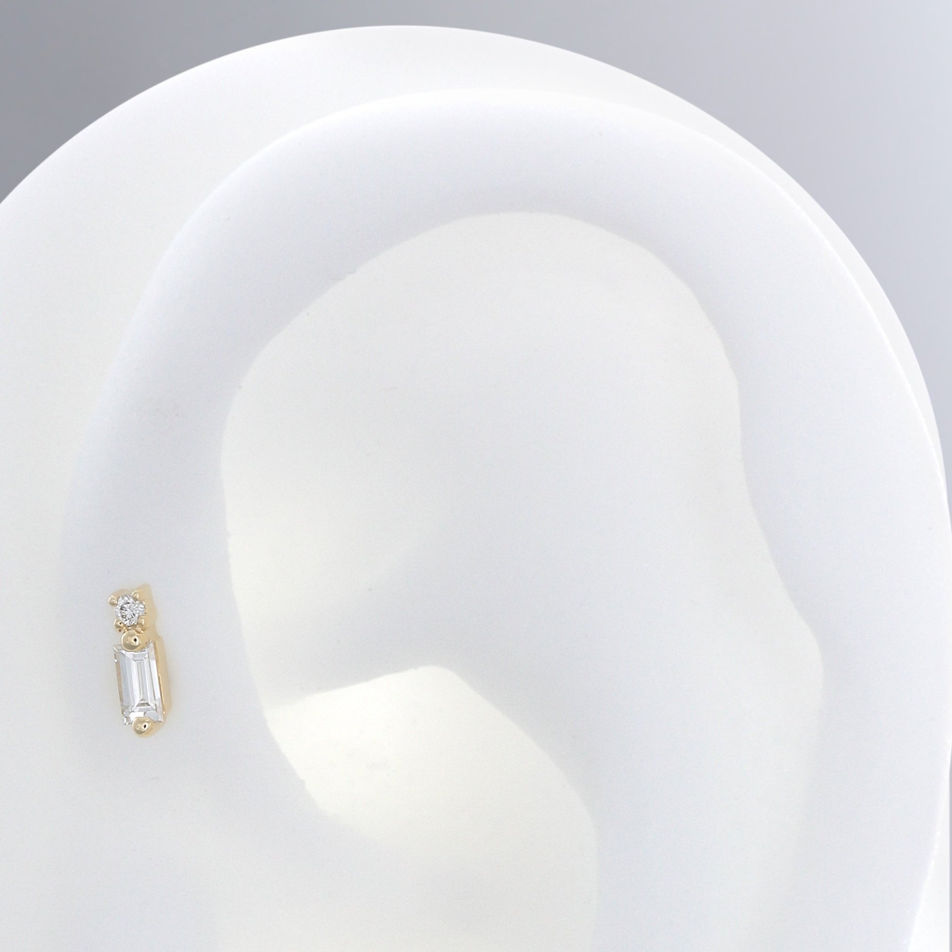 Size: 1.6mm x 5.8mm Material: 14k Gold Gemstone cut: Faceted Baguette & Faceted Round - White Diamonds |