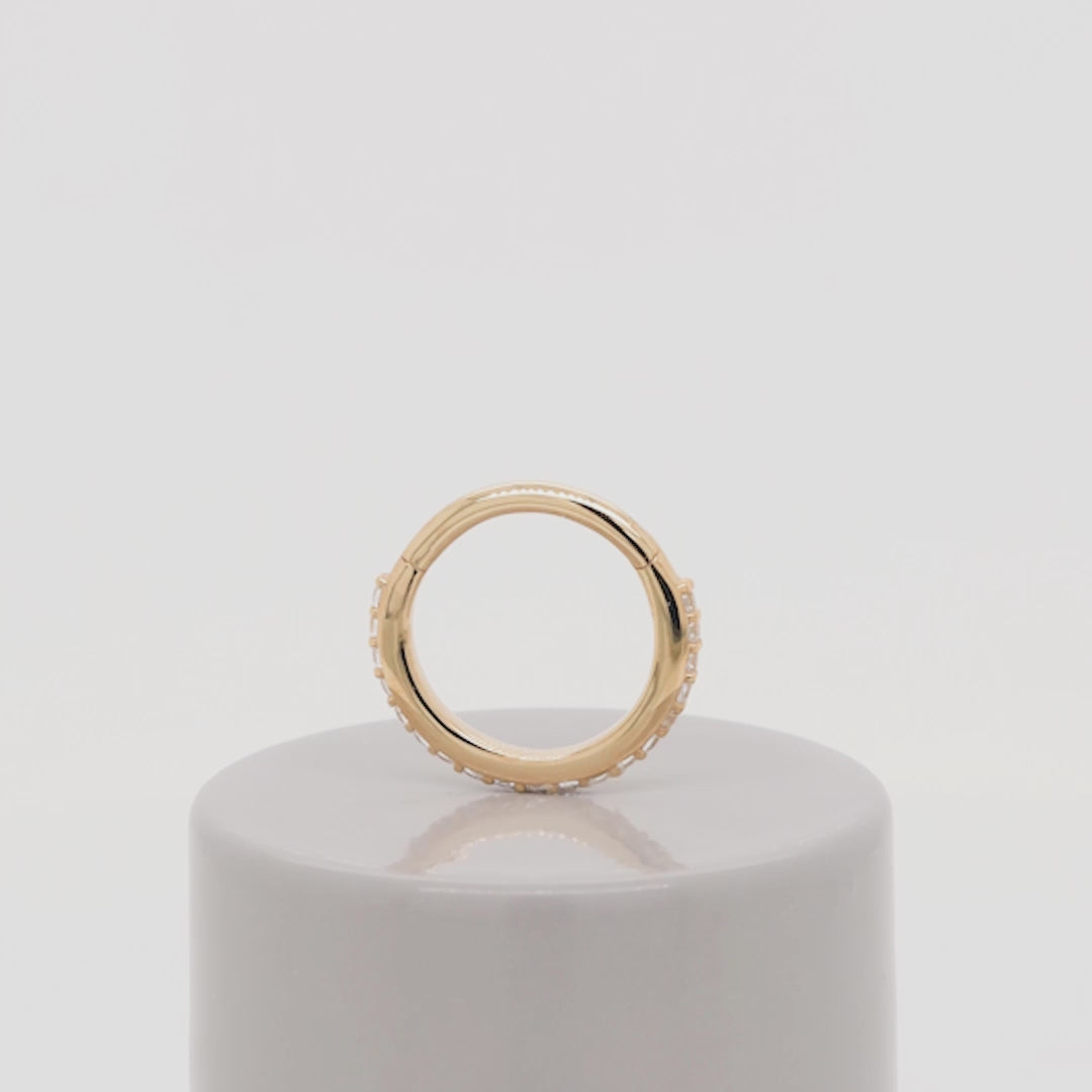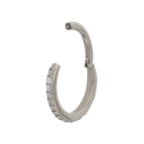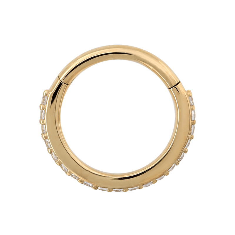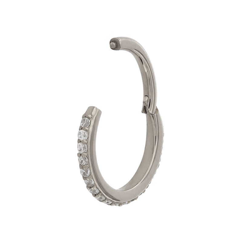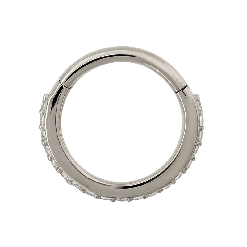This ring features CZs along the full edge of the ring. These are perfect for earlobe or cartilage piercings!
