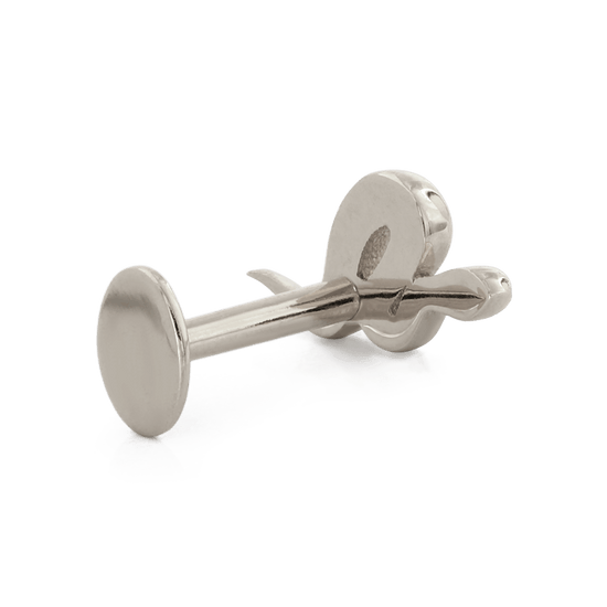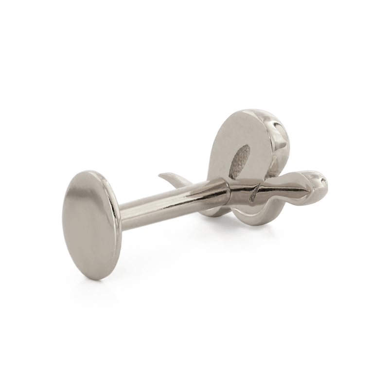 Fits any threadless post. If you buy it with a post in the options, the post is an 18g 1/4". That's the most common size for a healed ear piercing. |