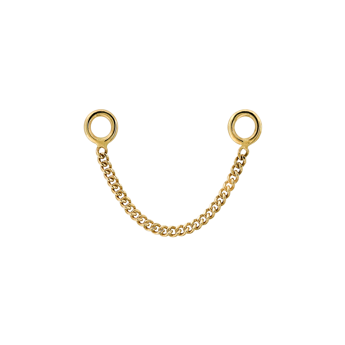 Connect two piercings with one chain or wrap it around to get the look of a hoop!