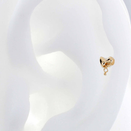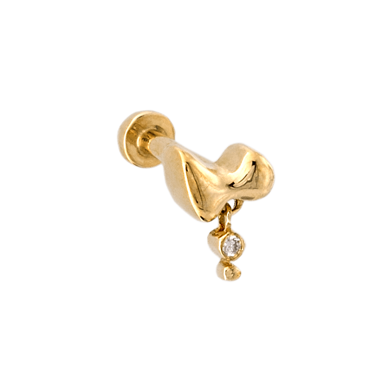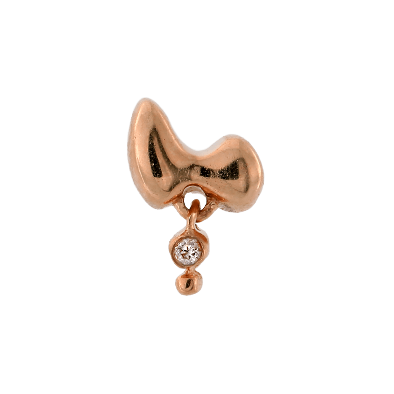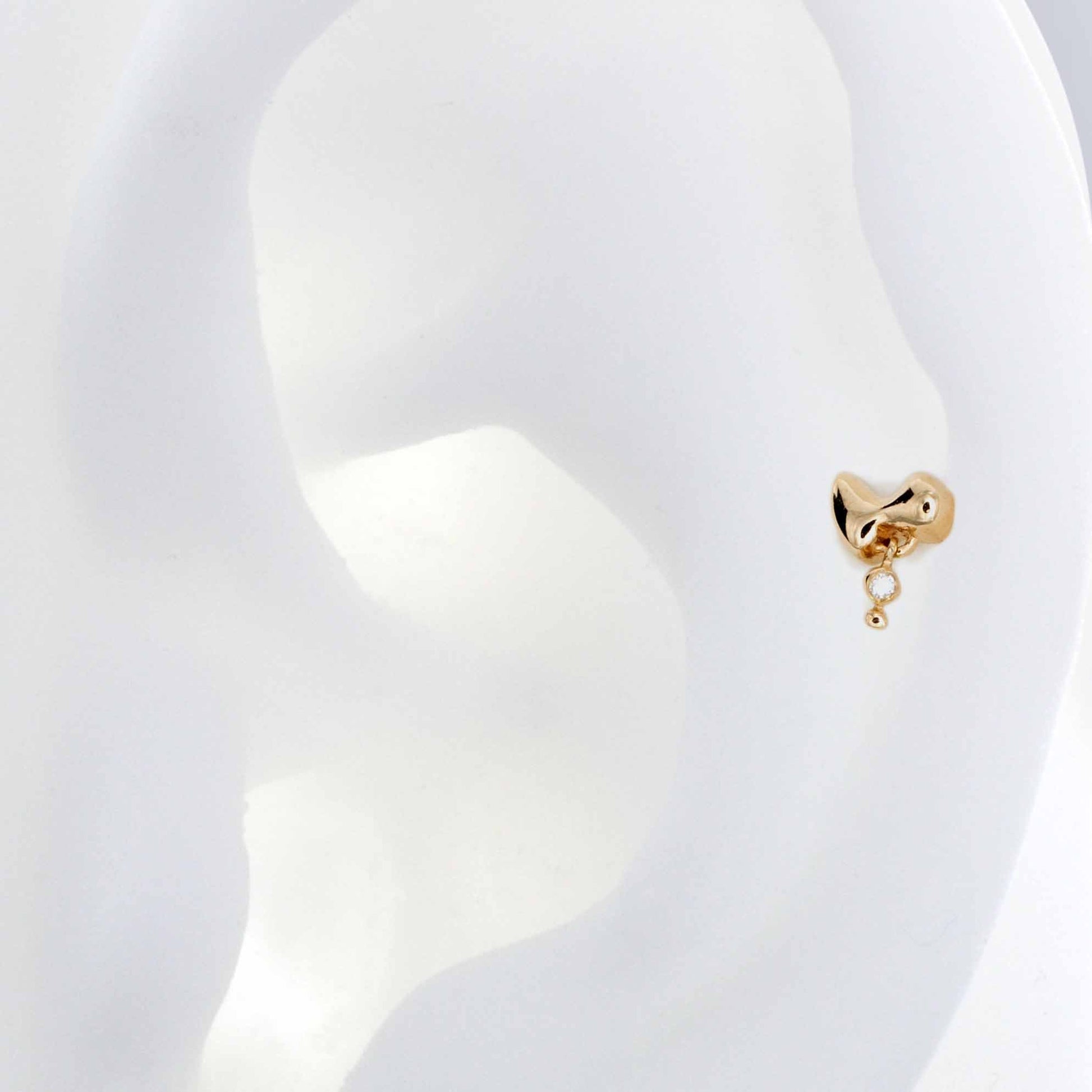 Size: 4.1mm x 6.3mm w/ dangle Material: solid 14k gold Gemstone: Faceted Round Diamond |