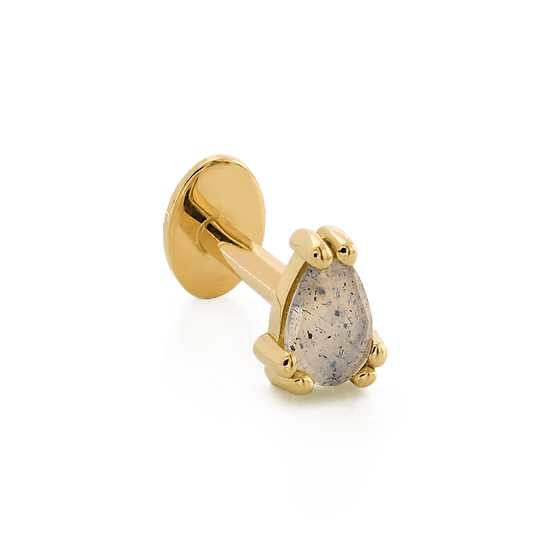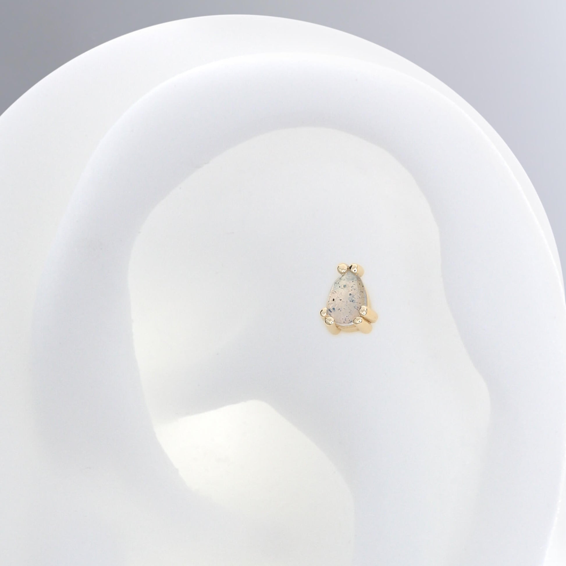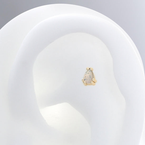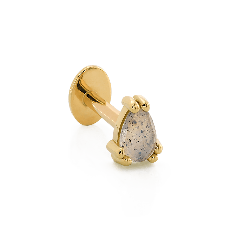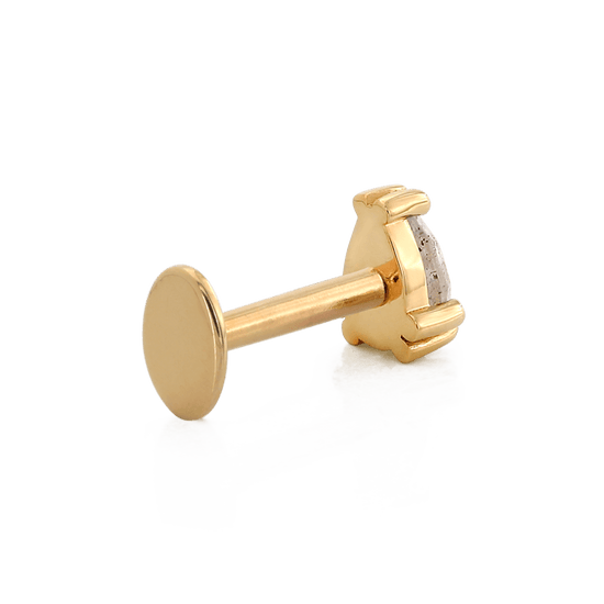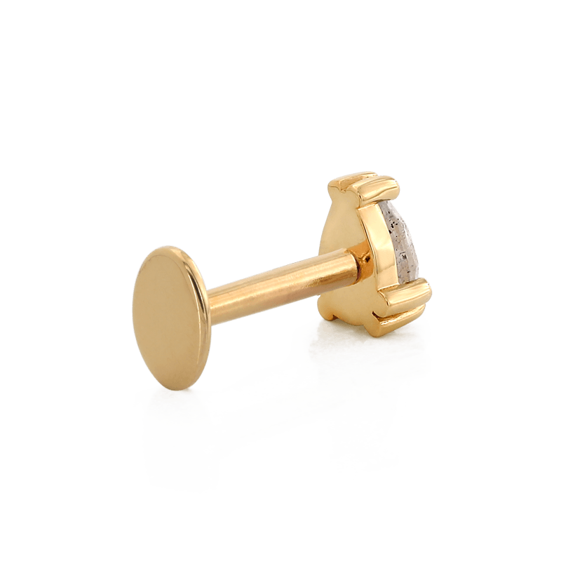 Size: 4mm x 2.5mm Material: solid 14k gold Gemstone: 3mm, Faceted Trillion |