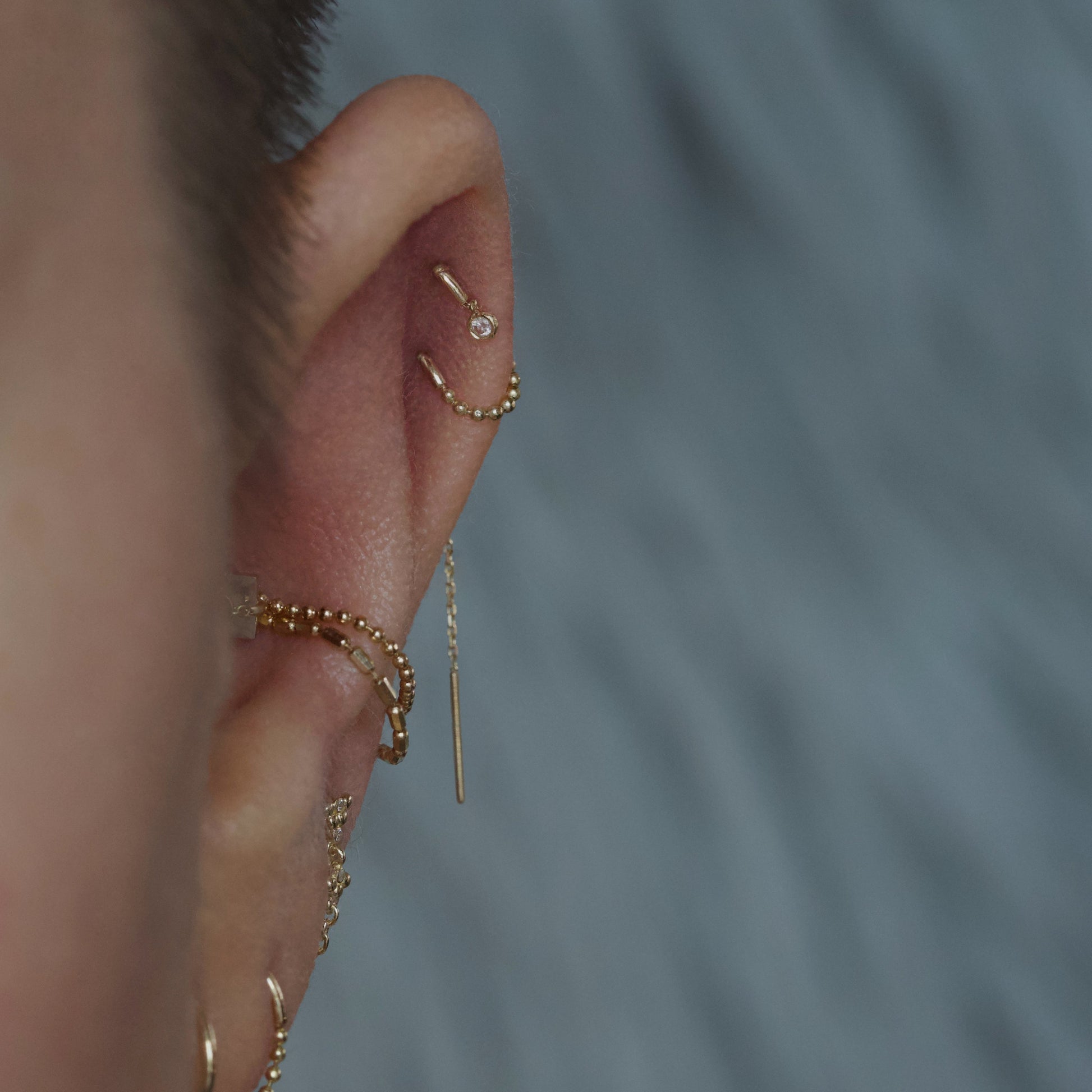 A new take on the Thing of Beauty! Do you have two piercings within 1/4" from each other? This literal beauty can accent two piercings that are pairs on the same ear. Check out the pics to see some inspiration on wearing it.