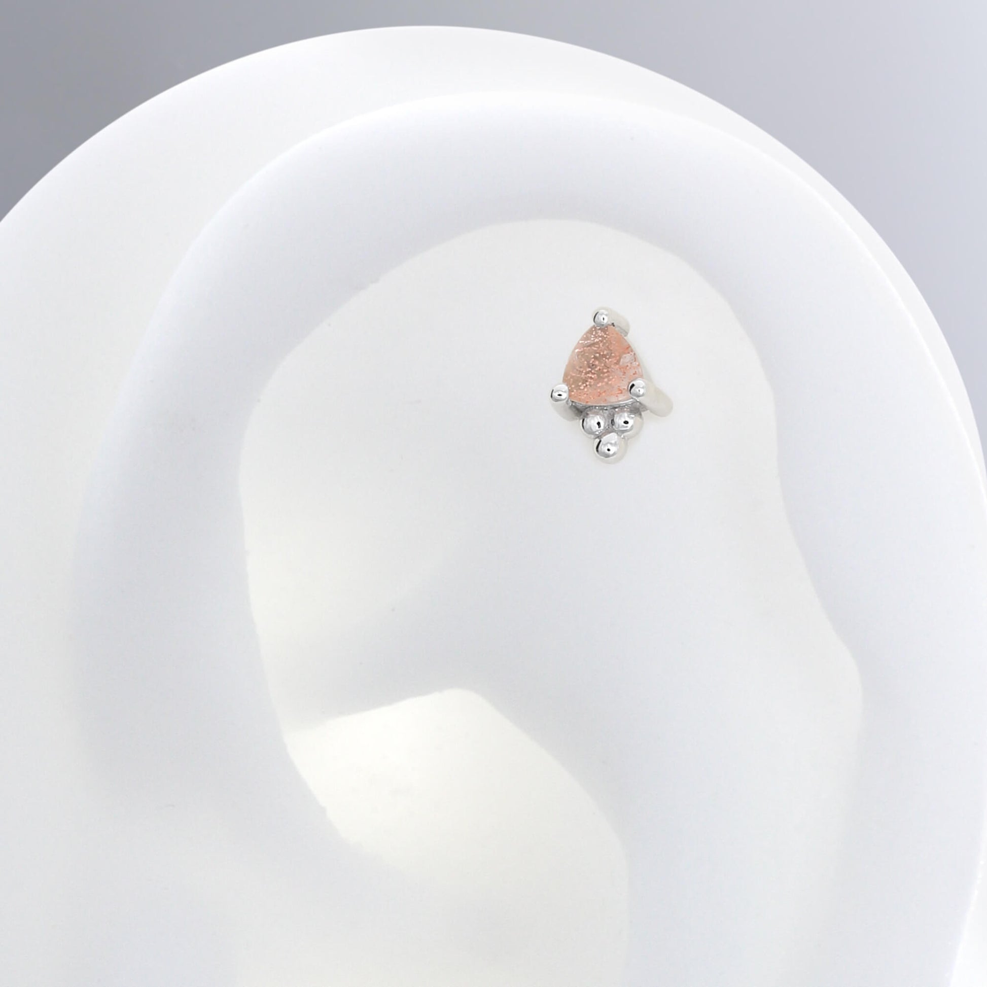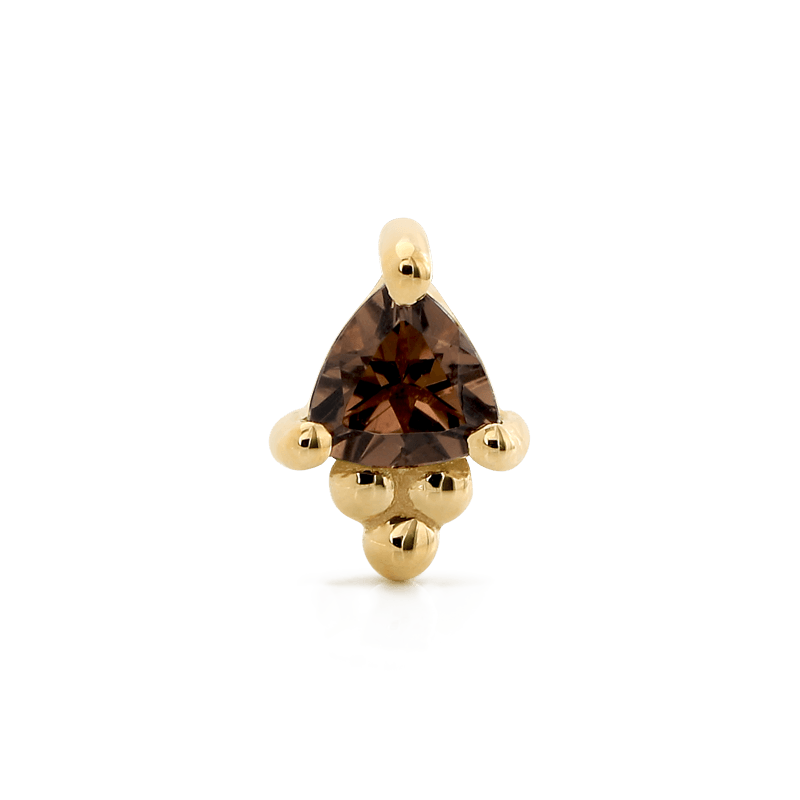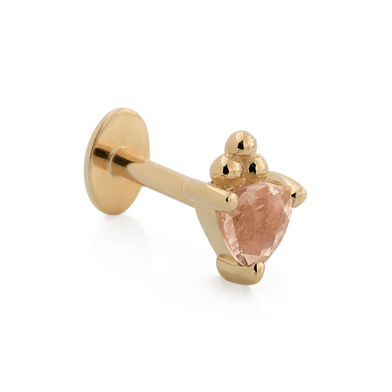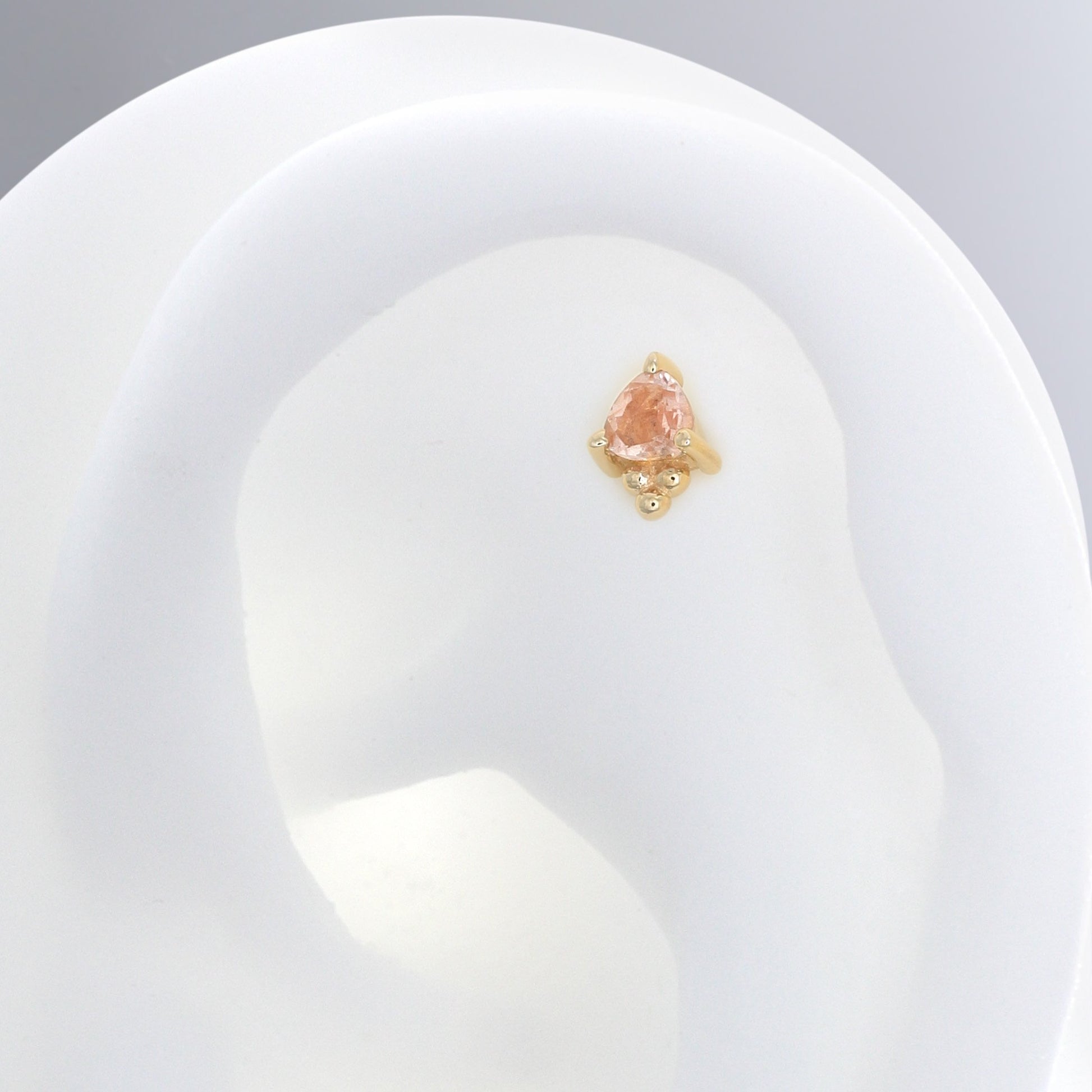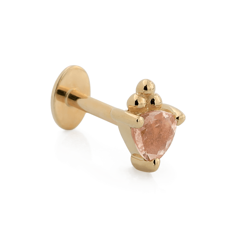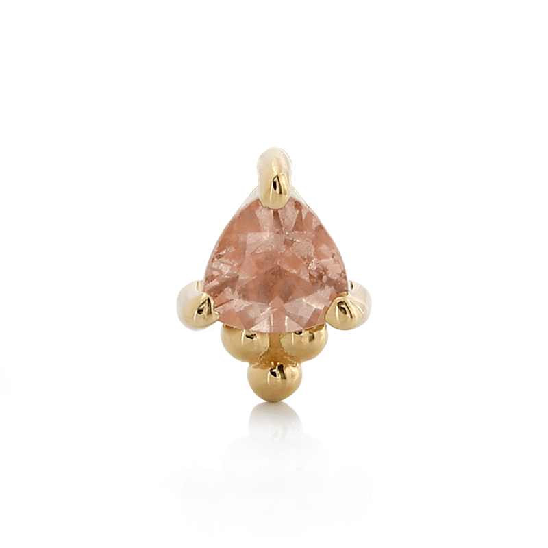 Size: 18g/16g 3mm with 1.25mm Tri Bead Accent Material: 14k Solid Gold Gemstone cut: Faceted Trillion, Oregon Sunstone |
