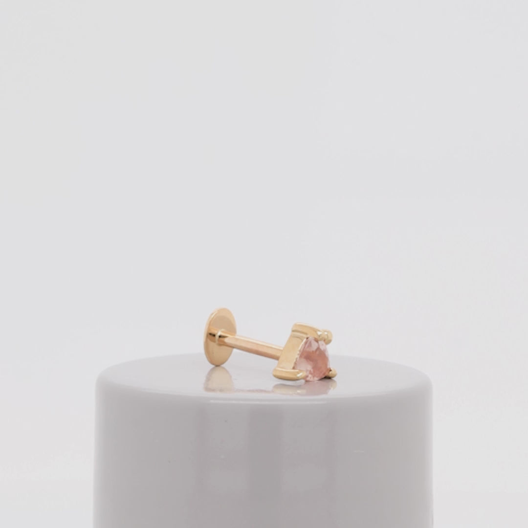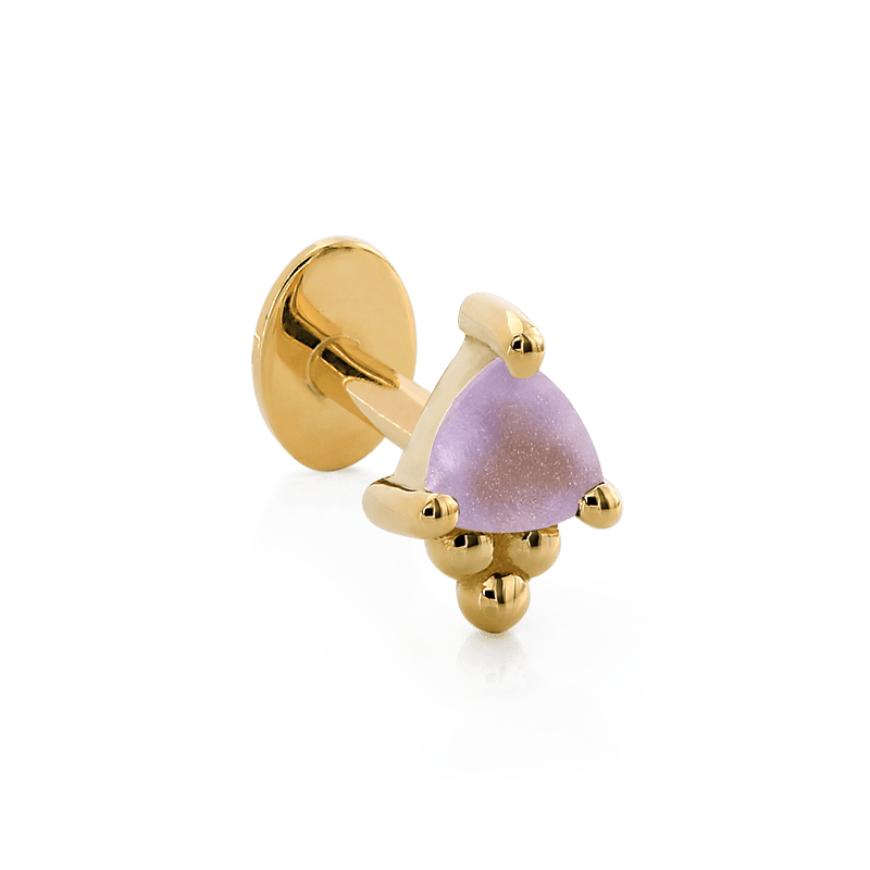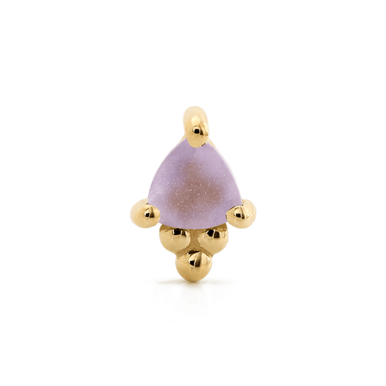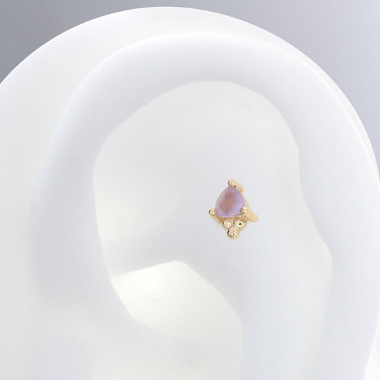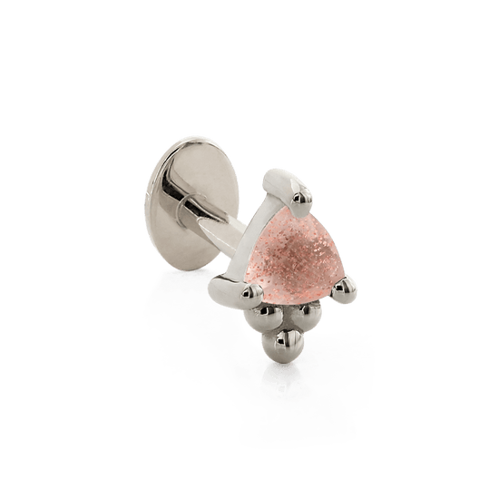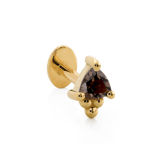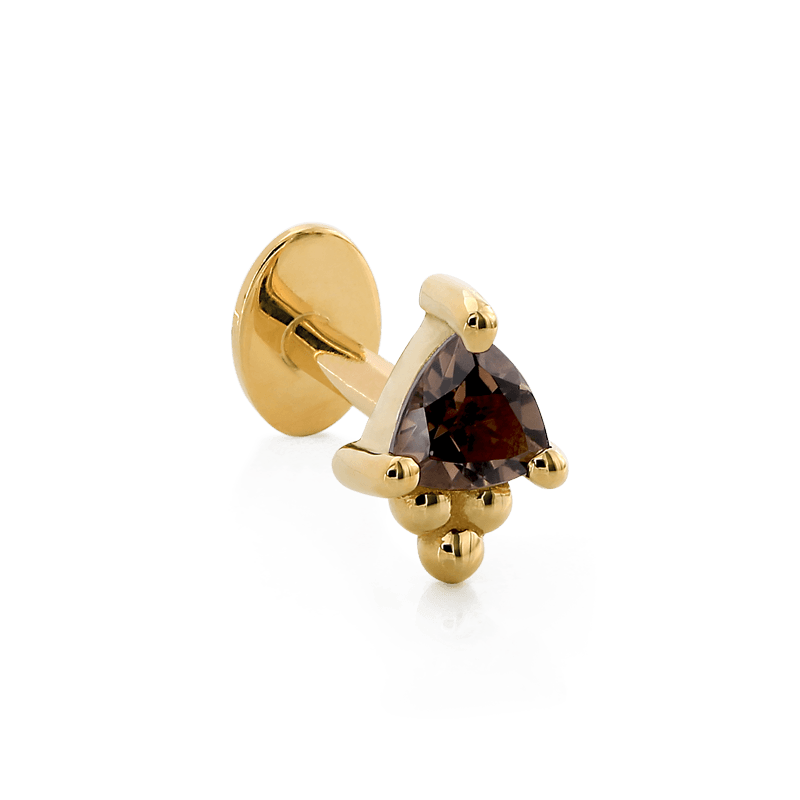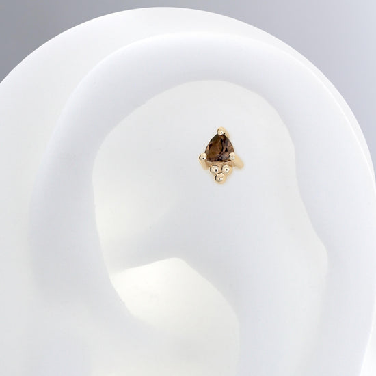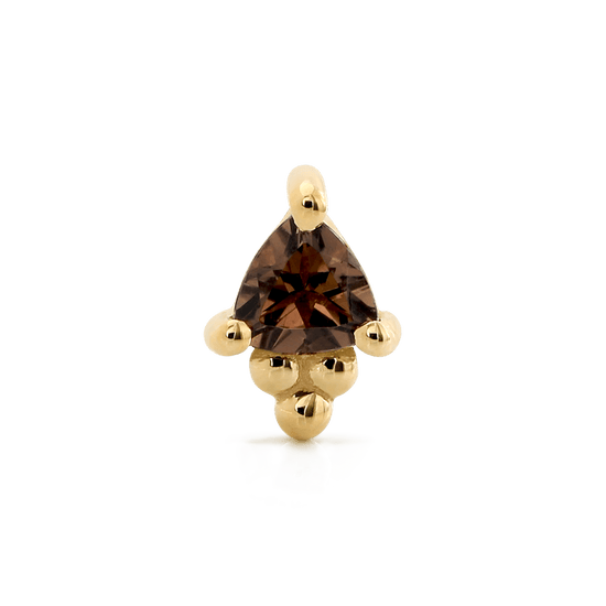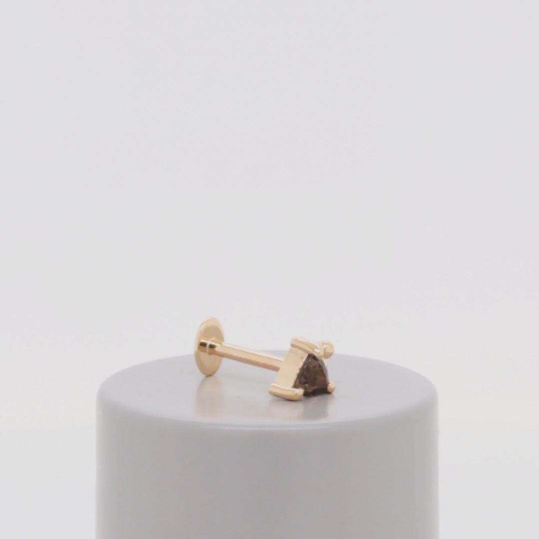 Size: 18g/16g 3mm with 1.25mm Tri Bead Accent Material: 14k Solid Gold Gemstone cut: Faceted Trillion, Oregon Sunstone |