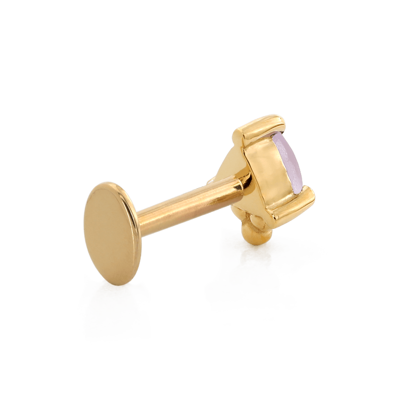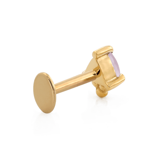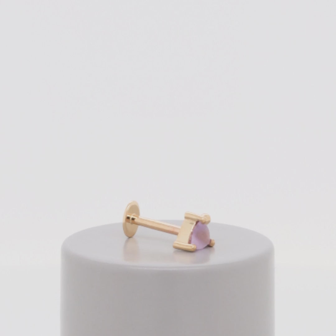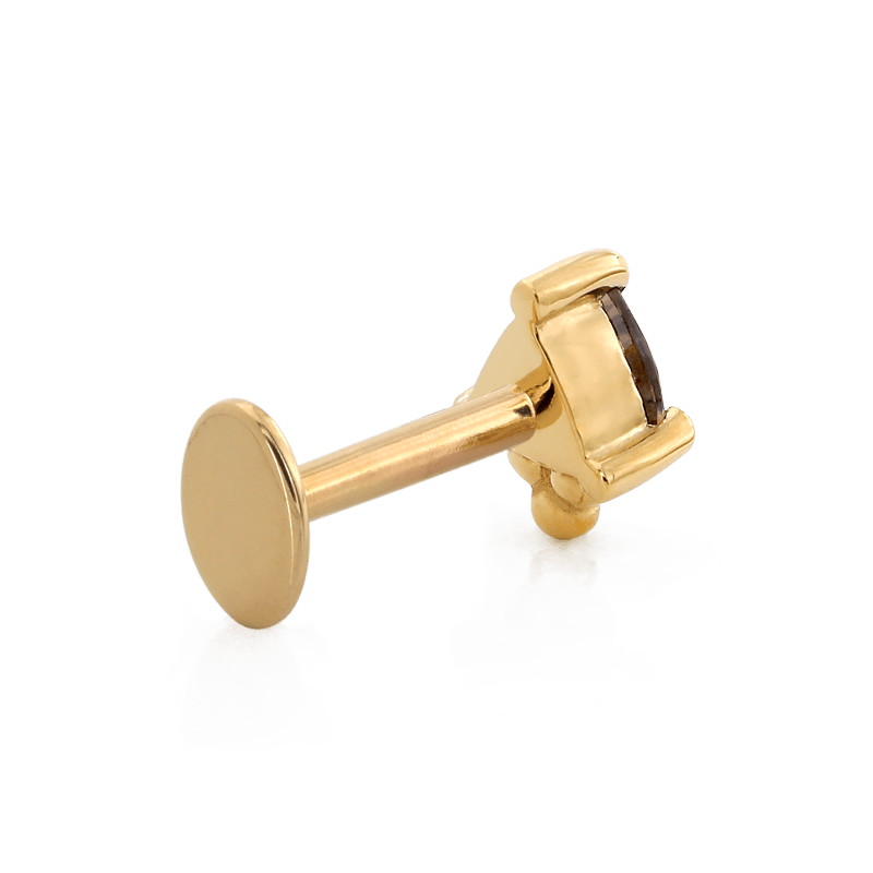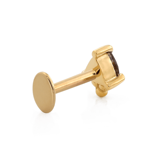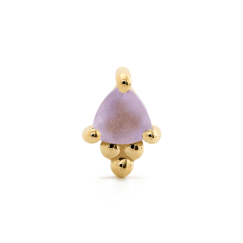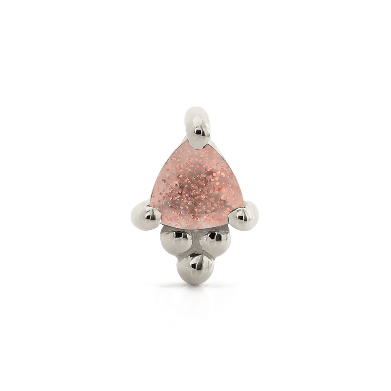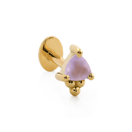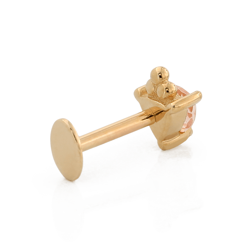 Size: 18g/16g 3mm with 1.25mm Tri Bead Accent Material: 14k Solid Gold Gemstone cut: Faceted Trillion, Oregon Sunstone |