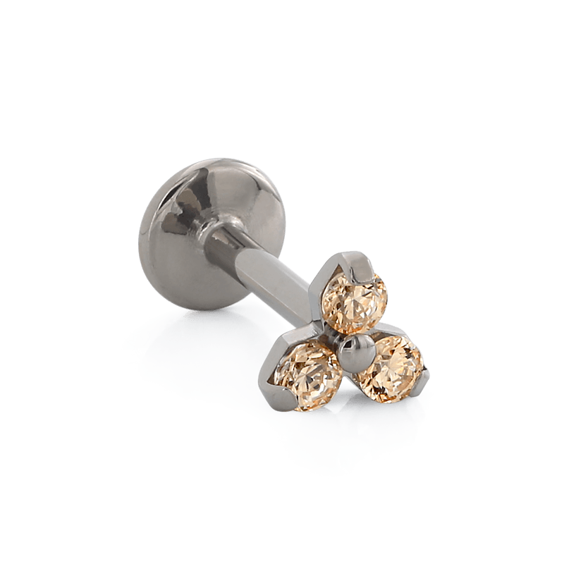 Size: 3.3mm Material: Titanium Gemstones: 3 x cubic zirconia |