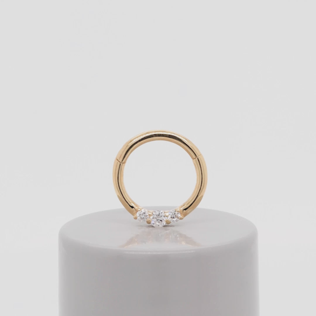 Adorably simple Triple Diamond Hinged Ring holding 3 GH-SI diamonds