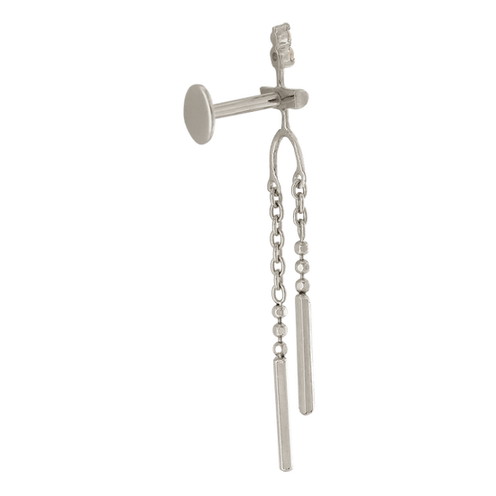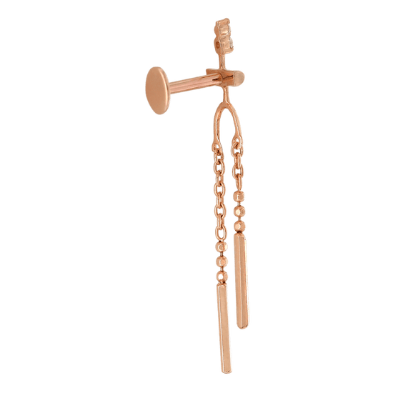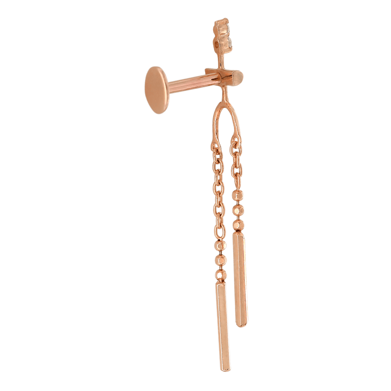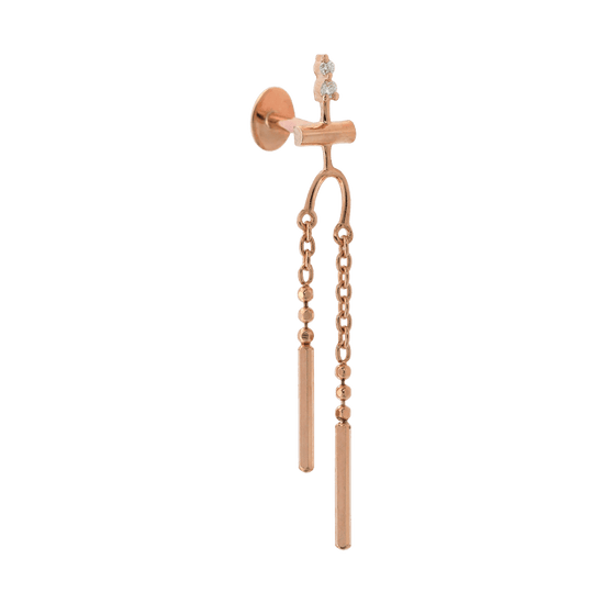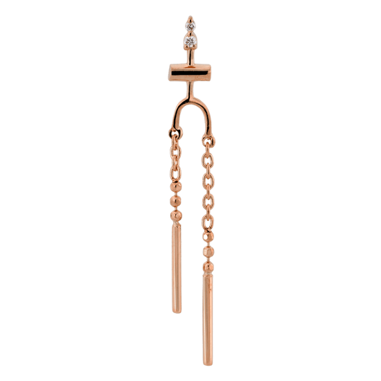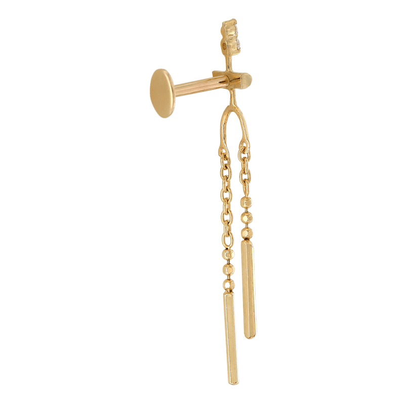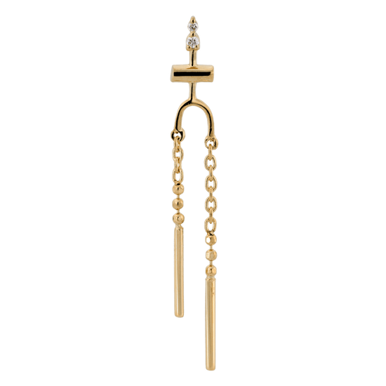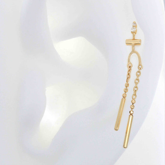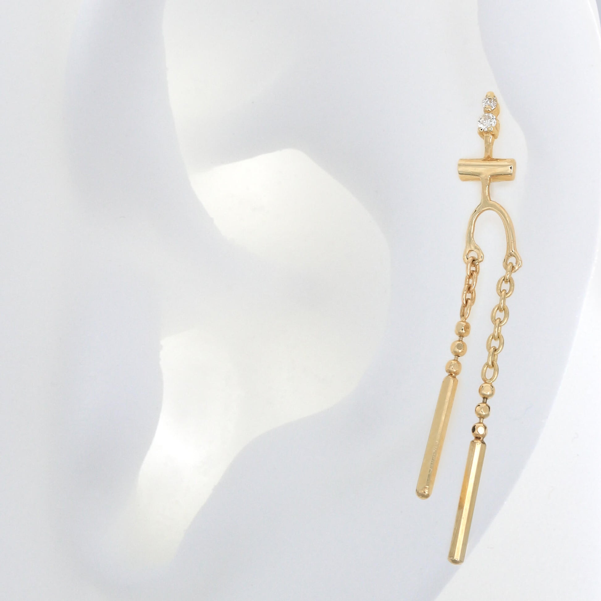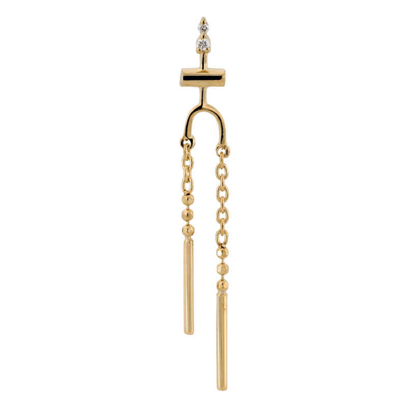 Size: 3.7mm x 11.5mm, 30.5mm w/ dangle Material: solid 14k gold Gemstone: Faceted Round Diamonds |