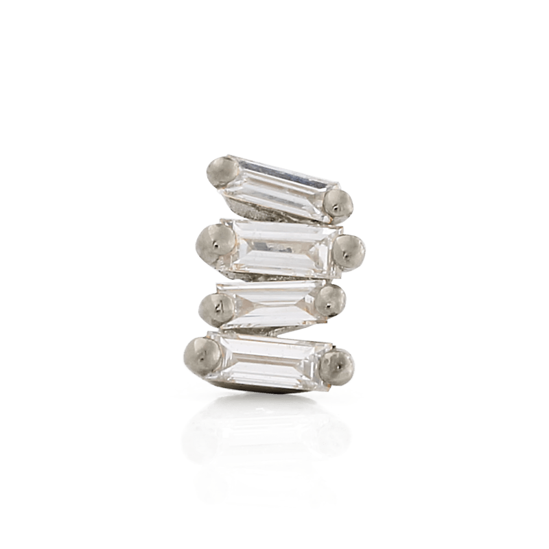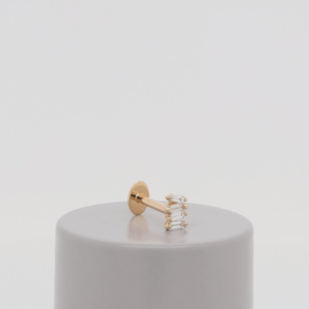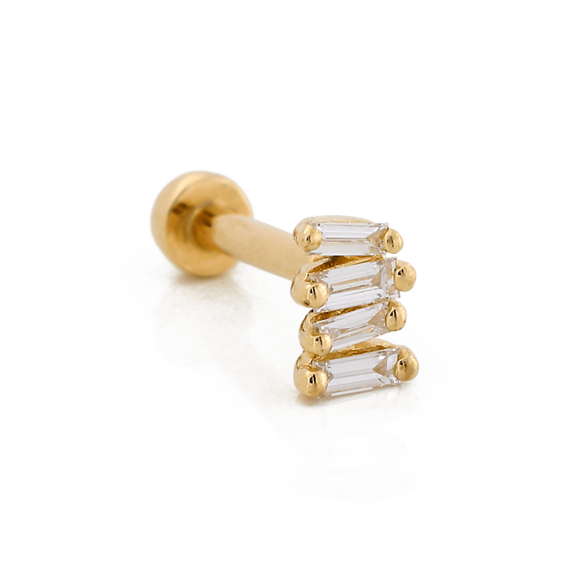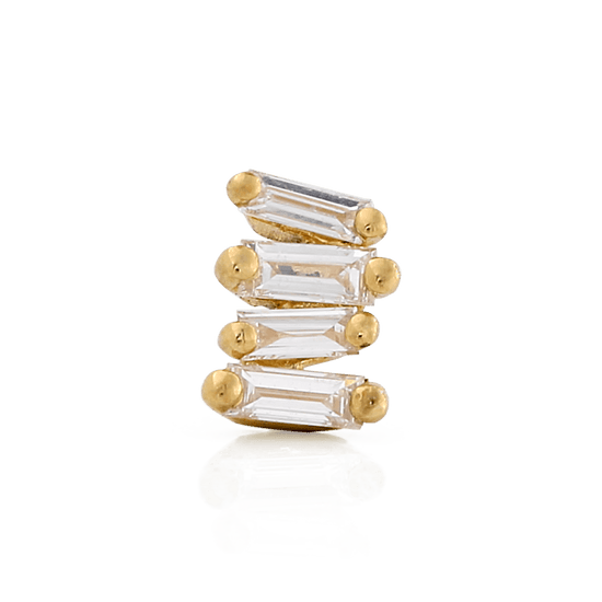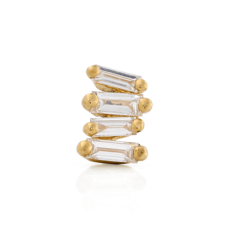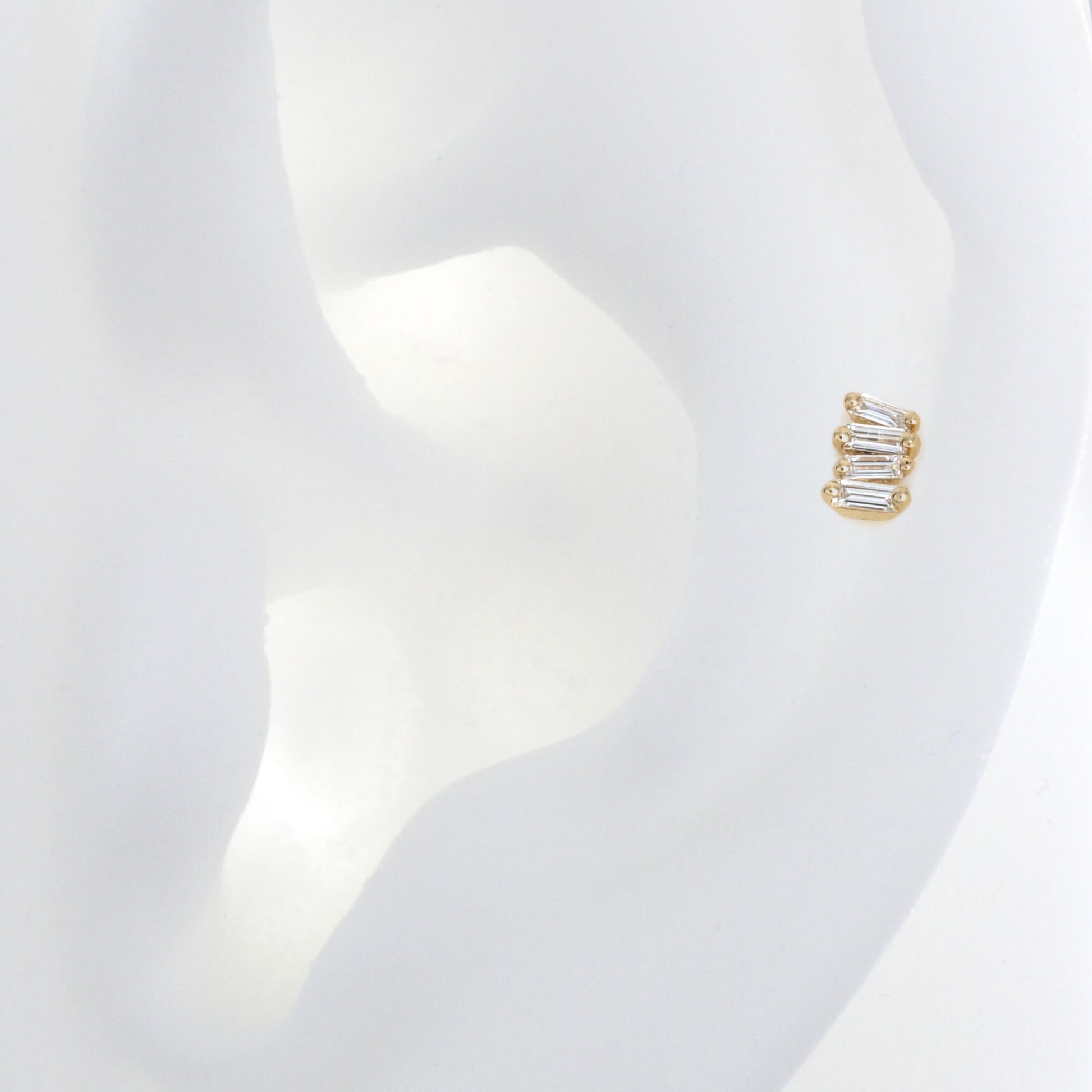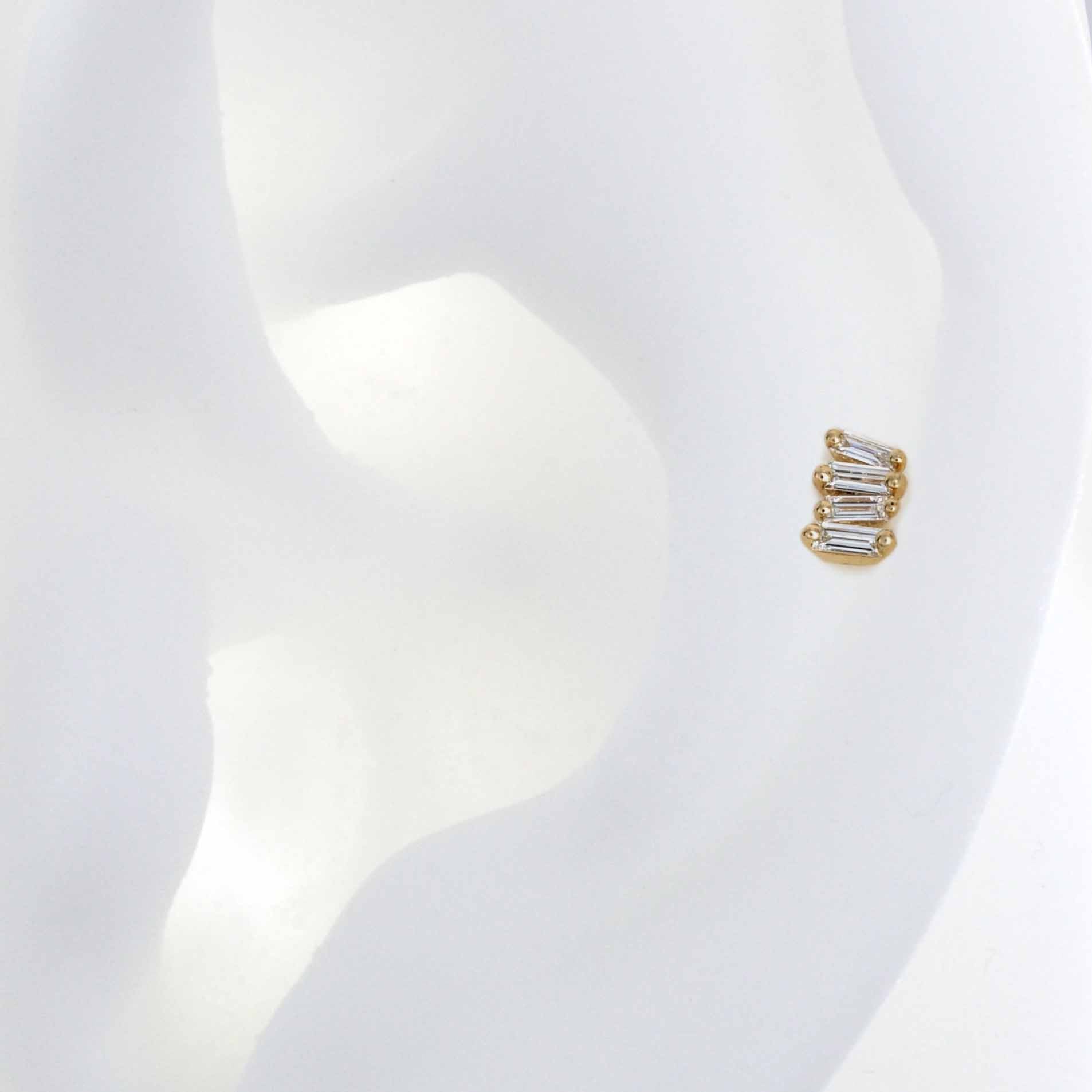 14k Solid gold Uneven Baguette is four unevenly placed Baguette Diamonds