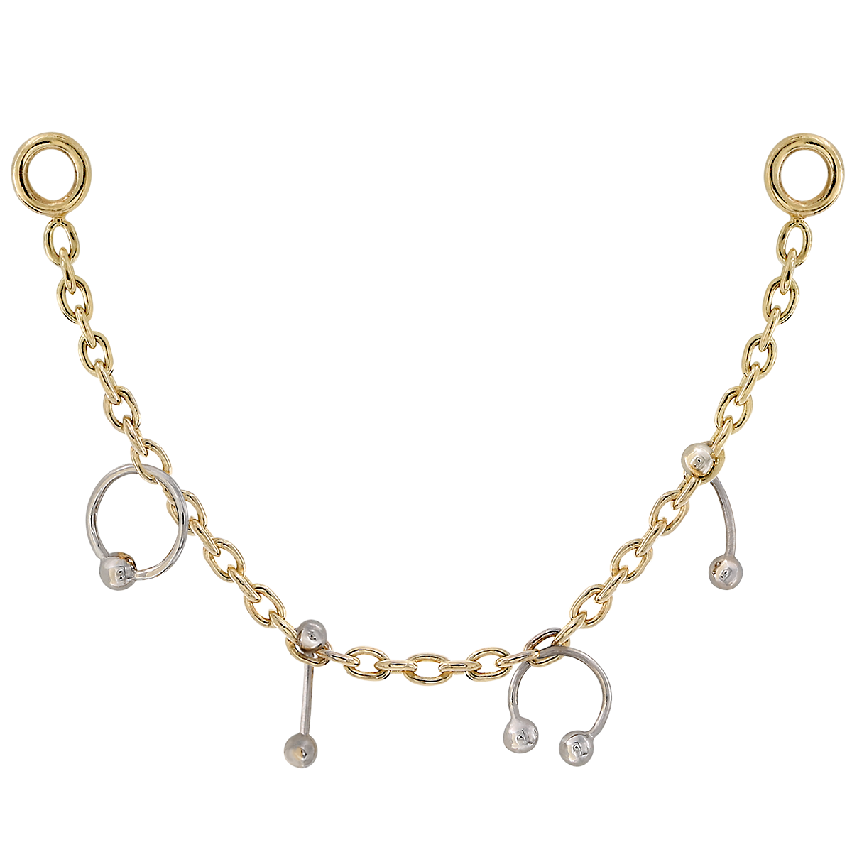 Connect two piercings with one chain or wrap it around to get the look of a hoop!