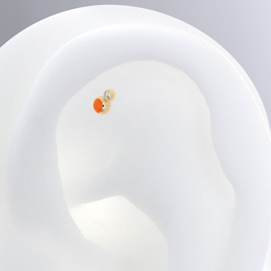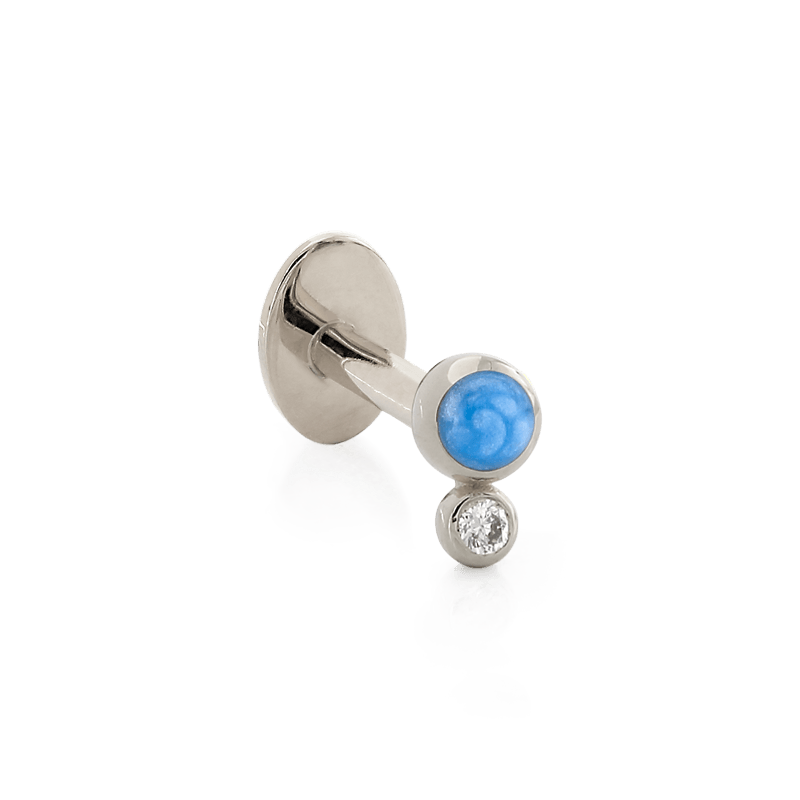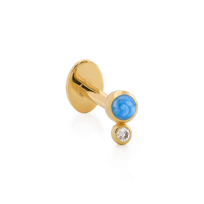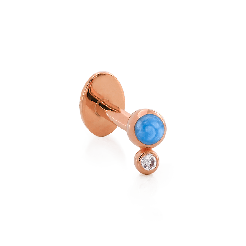 Size: 2.5mm x 4mm Material: solid 14k gold Gemstone: Faceted Round Diamond, Round Enamel |