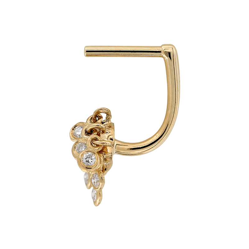 Size: 18g Material: solid 14k gold Gemstone: Faceted Round Diamonds |