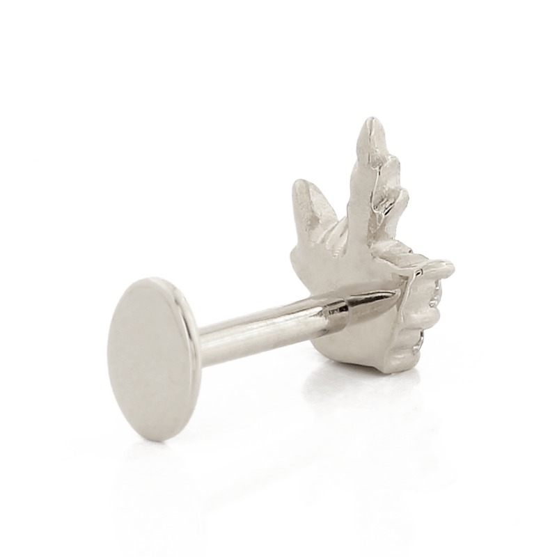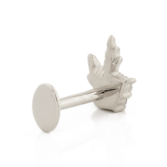 Fits any threadless post. If you buy it with a post in the options, the post is an 18g 1/4". That's the most common size for a healed ear piercing. |