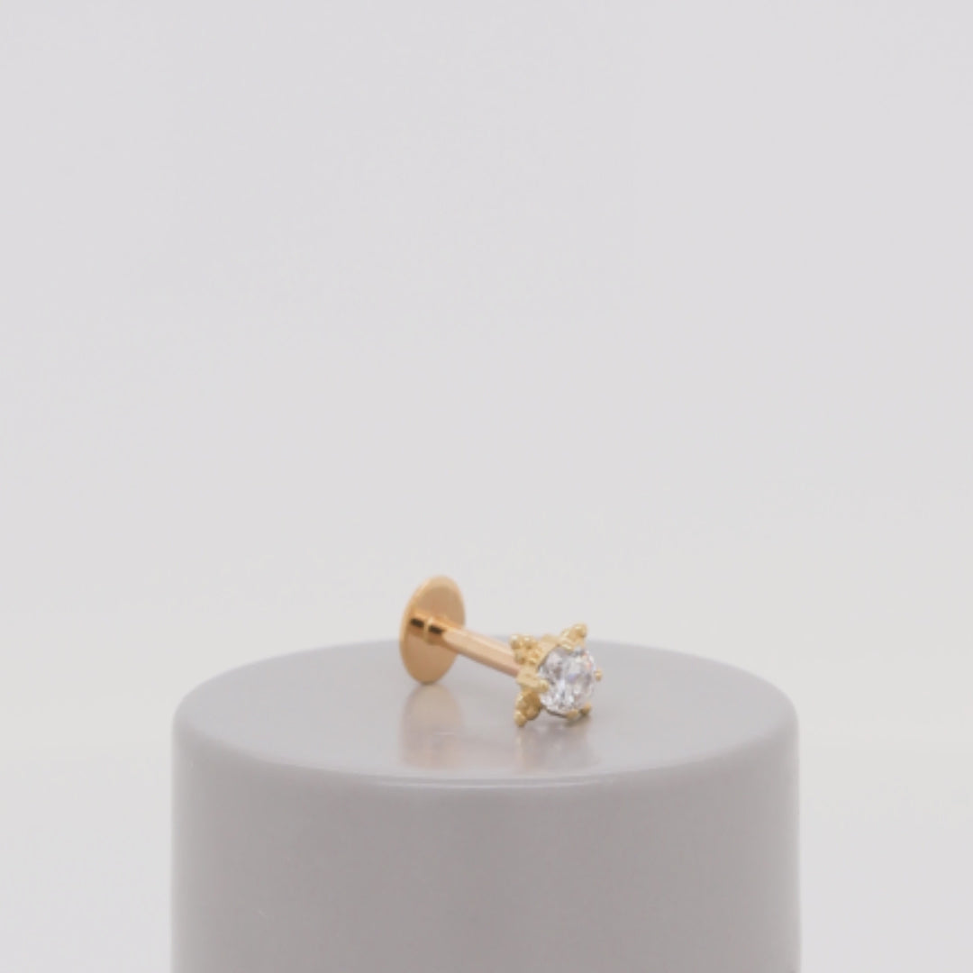 Size: 2mm = 2.7mm x 3.7mm Material: 18k Gold Gemstone: Faceted White CZ |